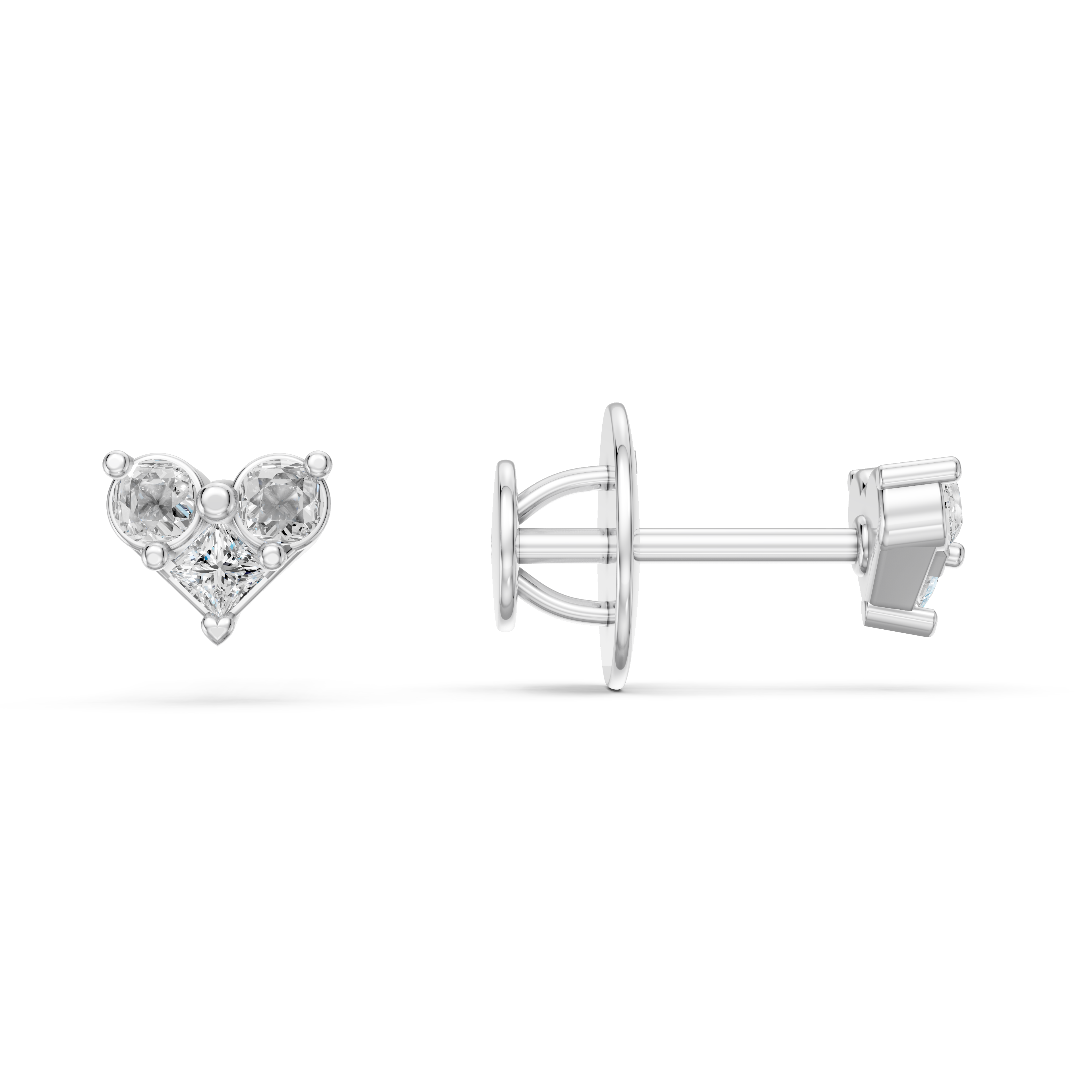 Thiết kế kiểu dáng Pave với các viên kim cương được đính chặt trên nền vàng trắng 14K, mang đến vẻ đẹp lấp lánh và kiêu sa. Hai viên kim cương Princess 1.9x1.9 kết hợp cùng bốn viên Round 2.2 tạo nên sự cân đối hoàn hảo, giúp đôi bông tai thêm phần tinh xảo hơn. Sự hài hòa giữa các đường nét và độ sáng lấp lánh làm nổi bật vẻ đẹp đẳng cấp hơn, tạo cảm giác vừa thanh lịch, vừa quyến rũ cho người đeo.