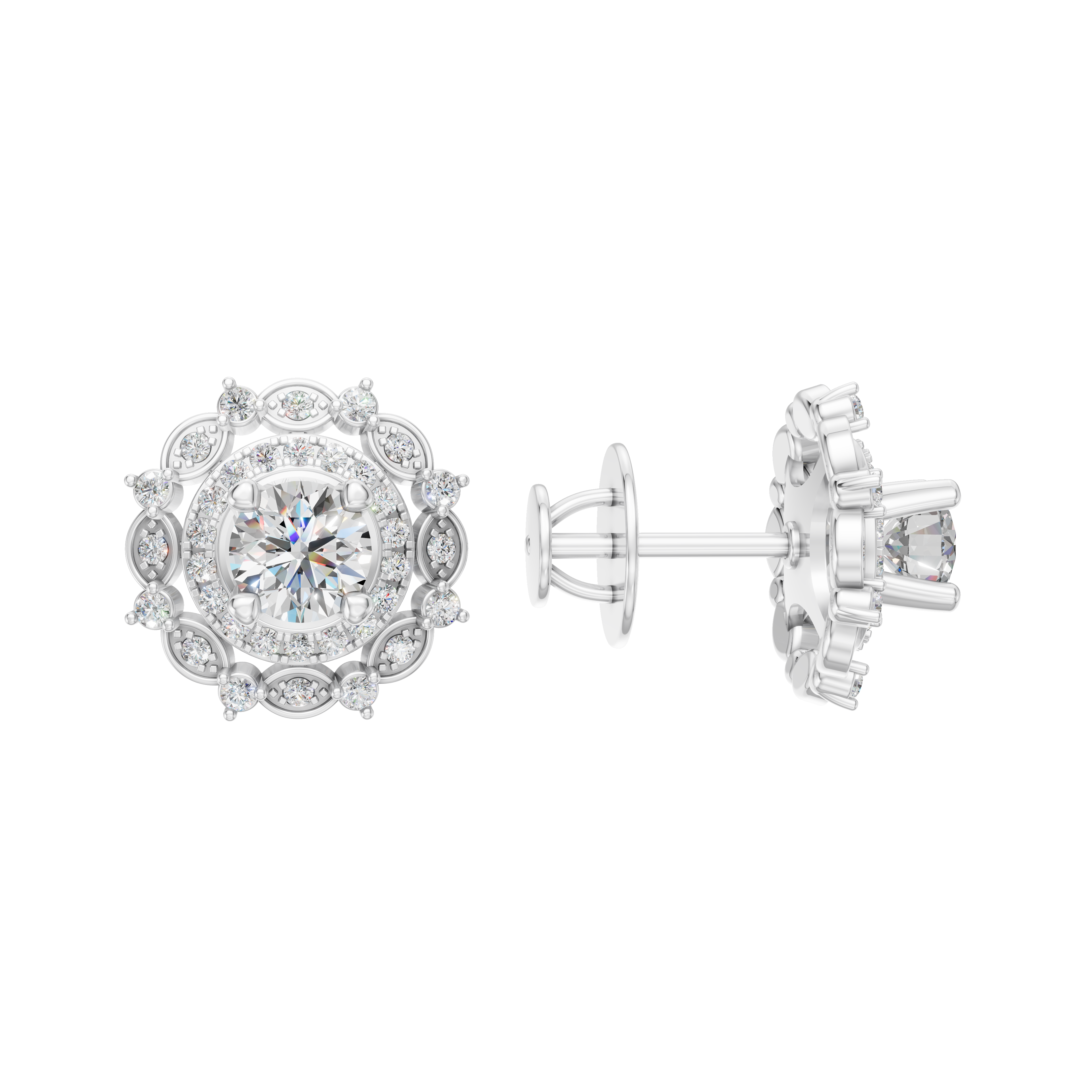 Vòng Halo thứ nhất bao quanh viên chủ rực rỡ, trong khi vòng Halo thứ hai như một lớp bảo vệ, tôn lên vẻ đẹp hoàn hảo của bông tai, tạo điểm nhấn ấn tượng và cuốn hút cho người đeo. Các viên kim cương được đính kết tỉ mỉ, tôn vinh sự quý phái và lộng lẫy của viên kim cương chủ, đồng thời tăng thêm chiều sâu và độ sáng cho toàn bộ thiết kế.