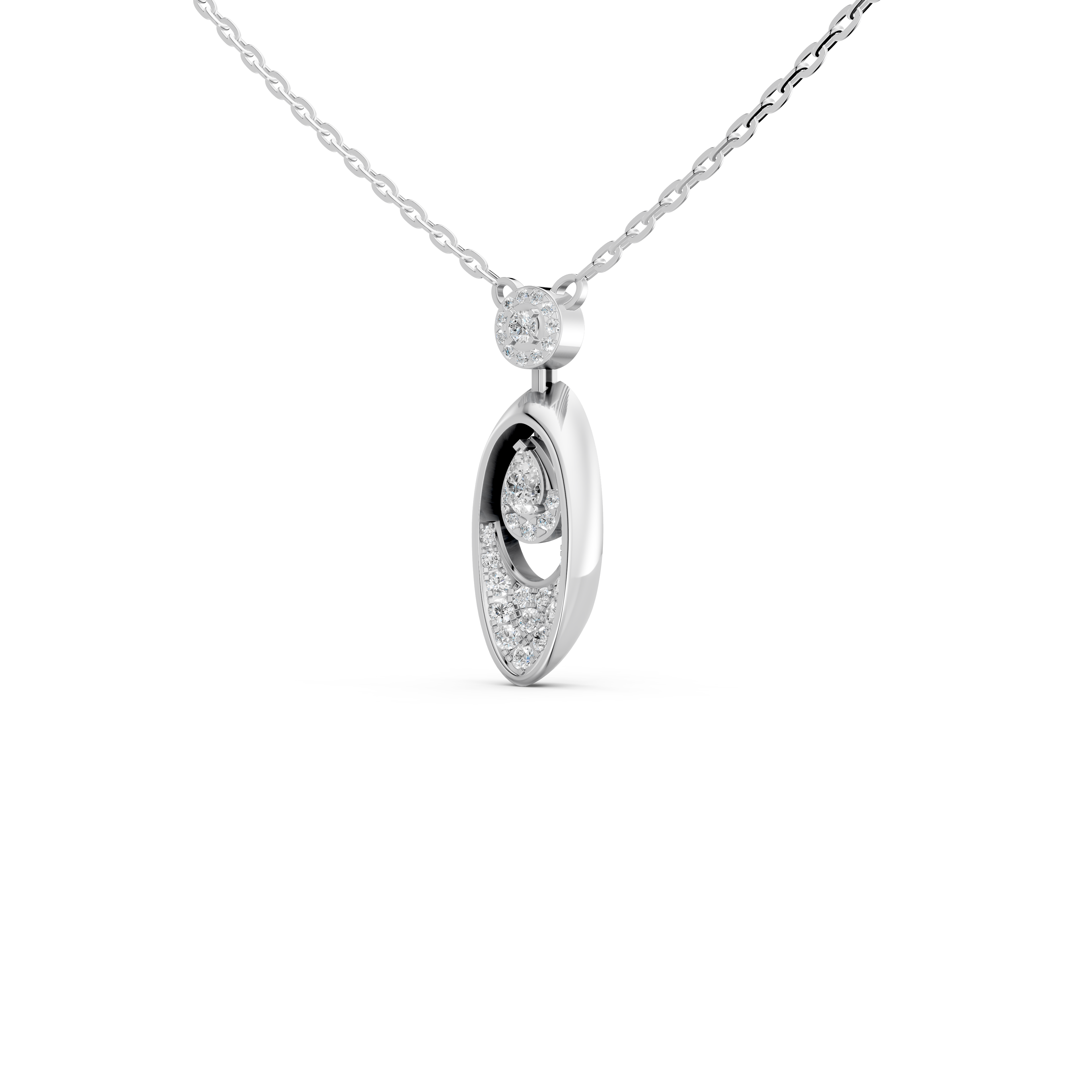 Được chế tác tinh xảo từ chất liệu vàng 18K cao cấp giữ được độ trắng sáng cao, kết hợp vẻ đẹp hoàn mỹ của kim cương, DN-0121 mang lại vẻ dịu dàng nhưng không kém phần sang trọng cho người đeo. Phần mặt dây nổi lên với viên kim cương chủ Pear lấp lánh, bao quanh bởi giọt nước đem đến vẻ trong trẻo, thanh thoát. “Con thuyền nhỏ” được đính kim cương tấm tạo cảm giác như đang chuyển động giữa ánh nắng rực rỡ, làm nổi bật sự tinh tế trong từng đường nét. Thiết kế dây mảnh mai, tôn lên nét duyên dáng và thanh lịch của nữ chủ nhân.