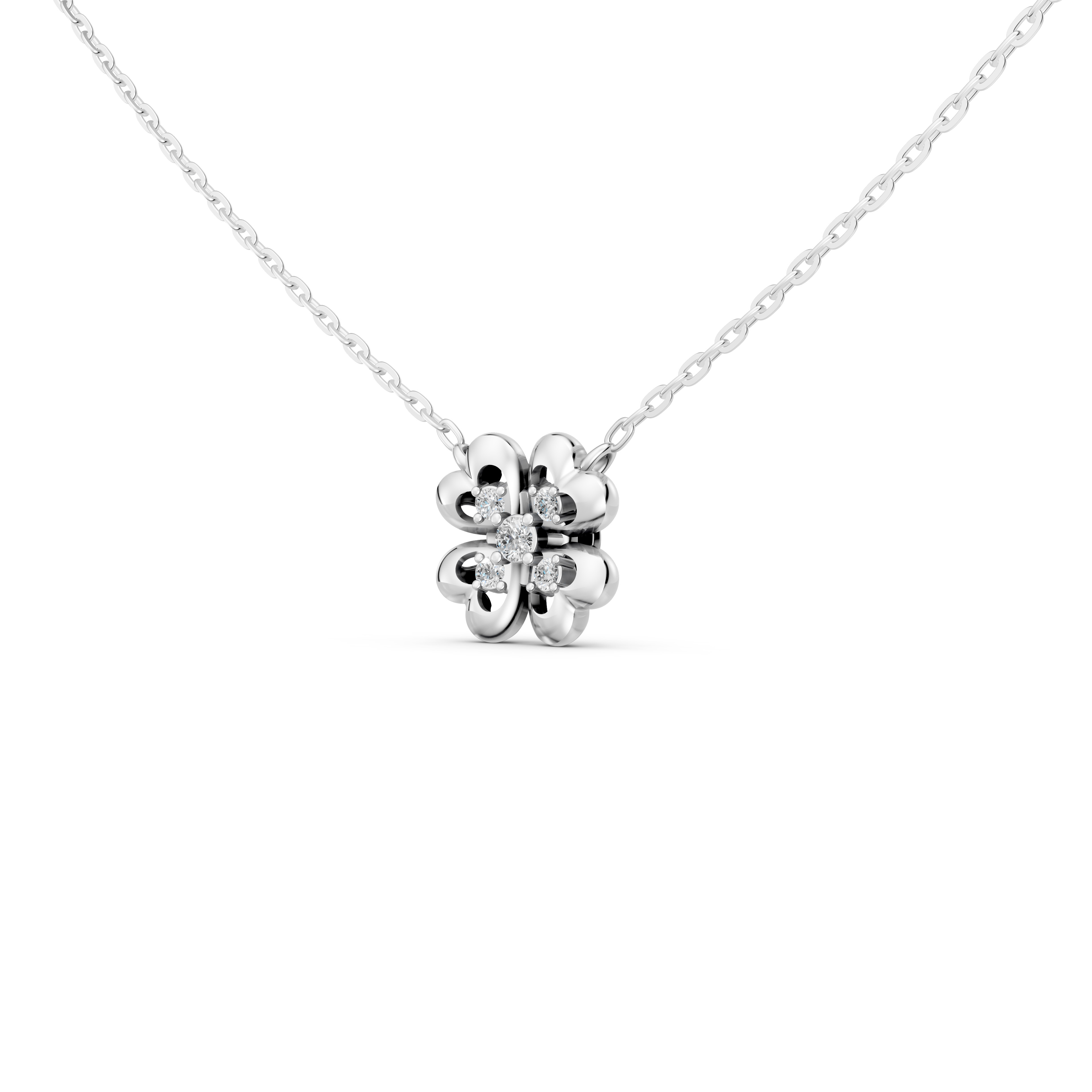 Dây chuyền nữ VCR DN-0161 là một tác phẩm trang sức tuyệt đẹp, toát lên vẻ đẹp tinh xảo hơn, đẳng cấp hơn, hoàn hảo cho những ai yêu thích sự thanh thoát và quý phái. Kiểu dáng Cluster lộng lẫy của dây chuyền thể hiện sự sang trọng tuyệt đối. Mặt dây chuyền được thiết kế thành hình một đóa hoa may mắn 4 cánh với những chi tiết cầu kỳ, tinh tế. Chính giữa là viên kim cương chủ 2.5 ly nổi bật, tỏa sáng rực rỡ và tạo điểm nhấn cho toàn bộ thiết kế. Mỗi cánh hoa được điểm xuyết thêm một viên kim cương Round 1.8 ly, mang đến sự hoàn thiện và sự hài hòa trong từng chi tiết.
