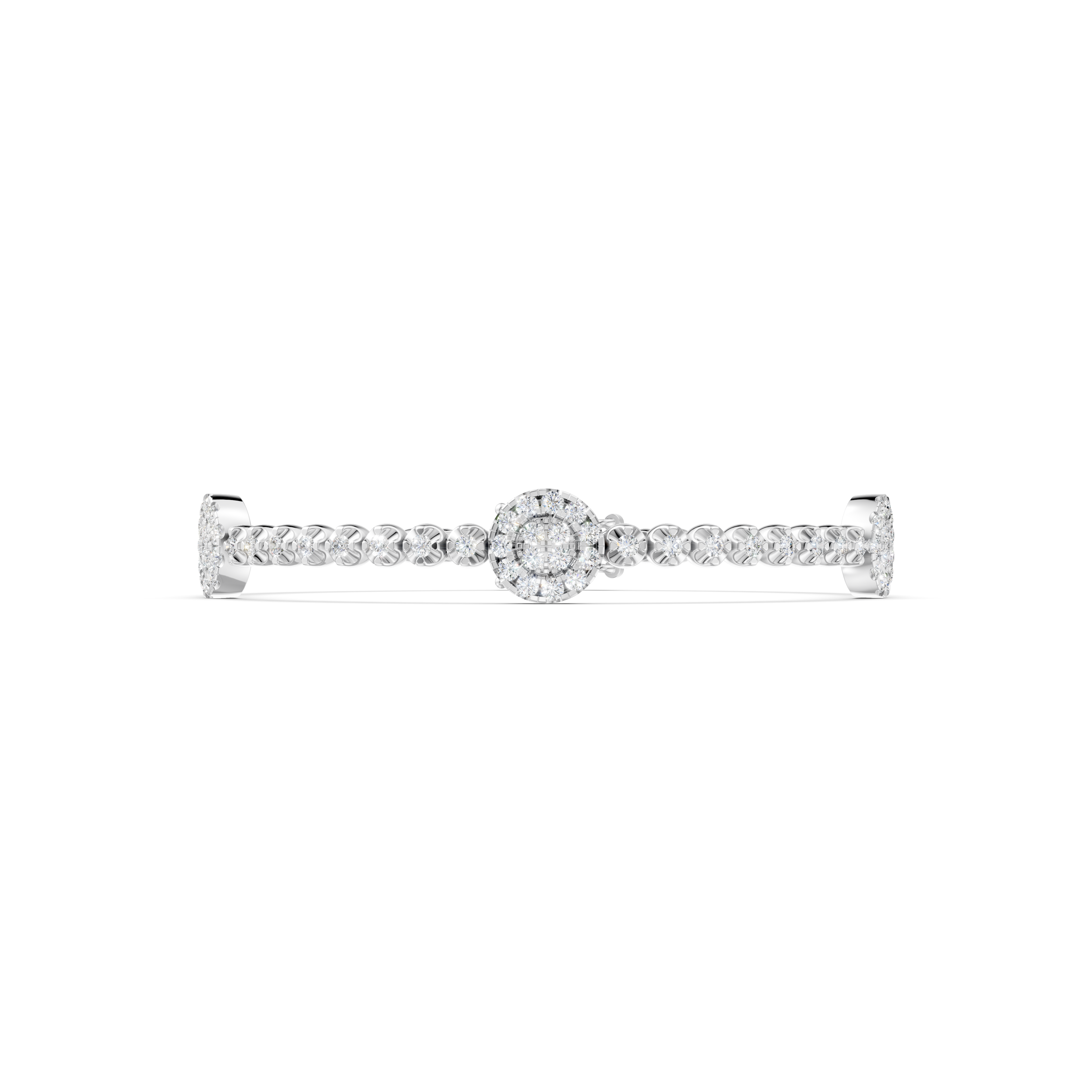 Thiết kế: Mặt của lắc tay được tạo thành từ chuỗi kim cương bao gồm 44 viên kim cương Round 1.5 ly và 45 viên kim cương Round 1.4 ly, xếp nối nhau một cách tinh xảo, giúp lắc tay nổi bật hơn và thu hút hơn.