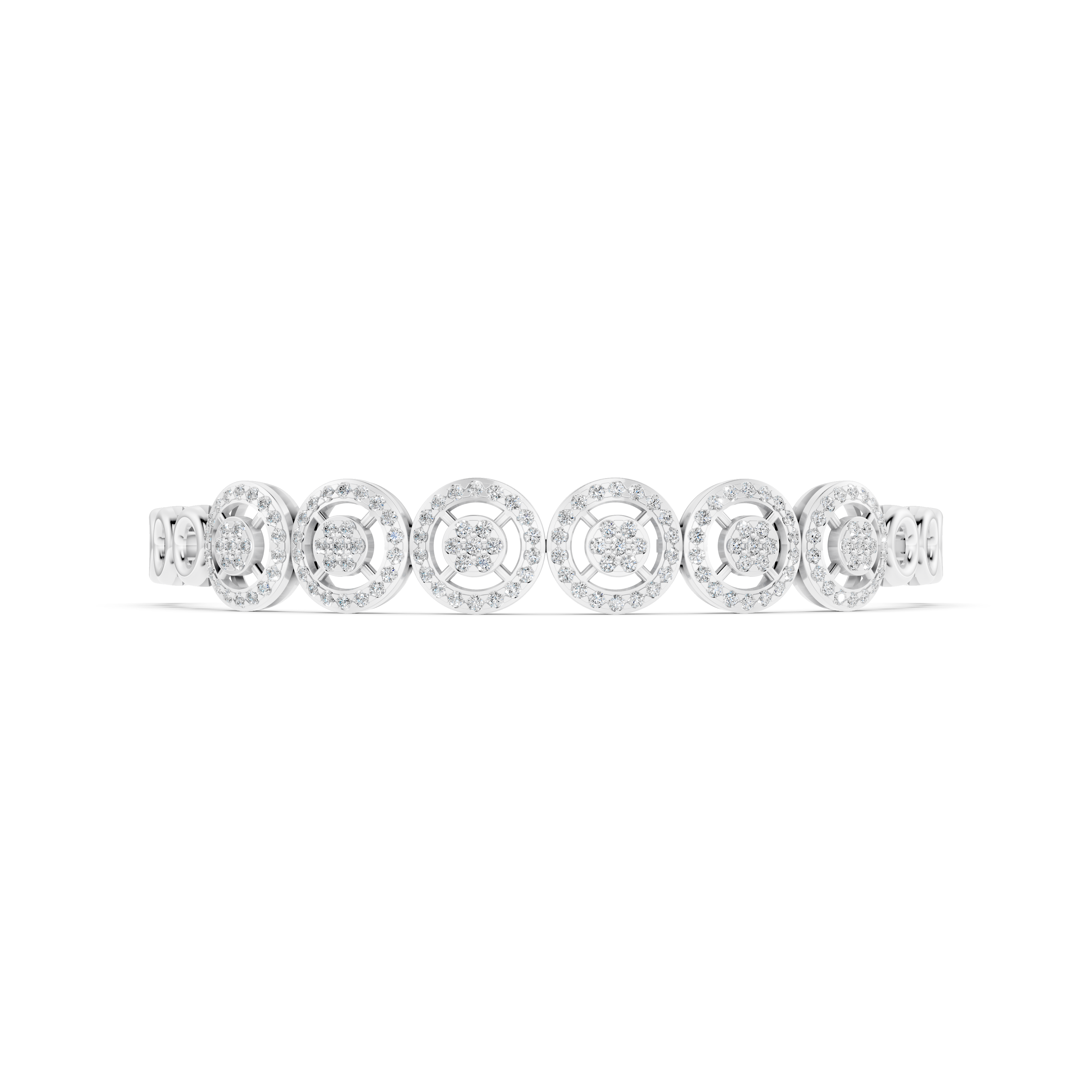 Điểm nhấn ấn tượng của LN-0085 là sự xuất hiện của 150 viên kim cương Round 0.9 ly được đính kết một cách tỉ mỉ, tỏa sáng rực rỡ và làm nổi bật vẻ đẹp sang trọng, quý phái của món trang sức. Chất liệu vàng trắng 14K đảm bảo độ bền vững, giúp những viên kim cương tỏa sáng một cách hoàn hảo.