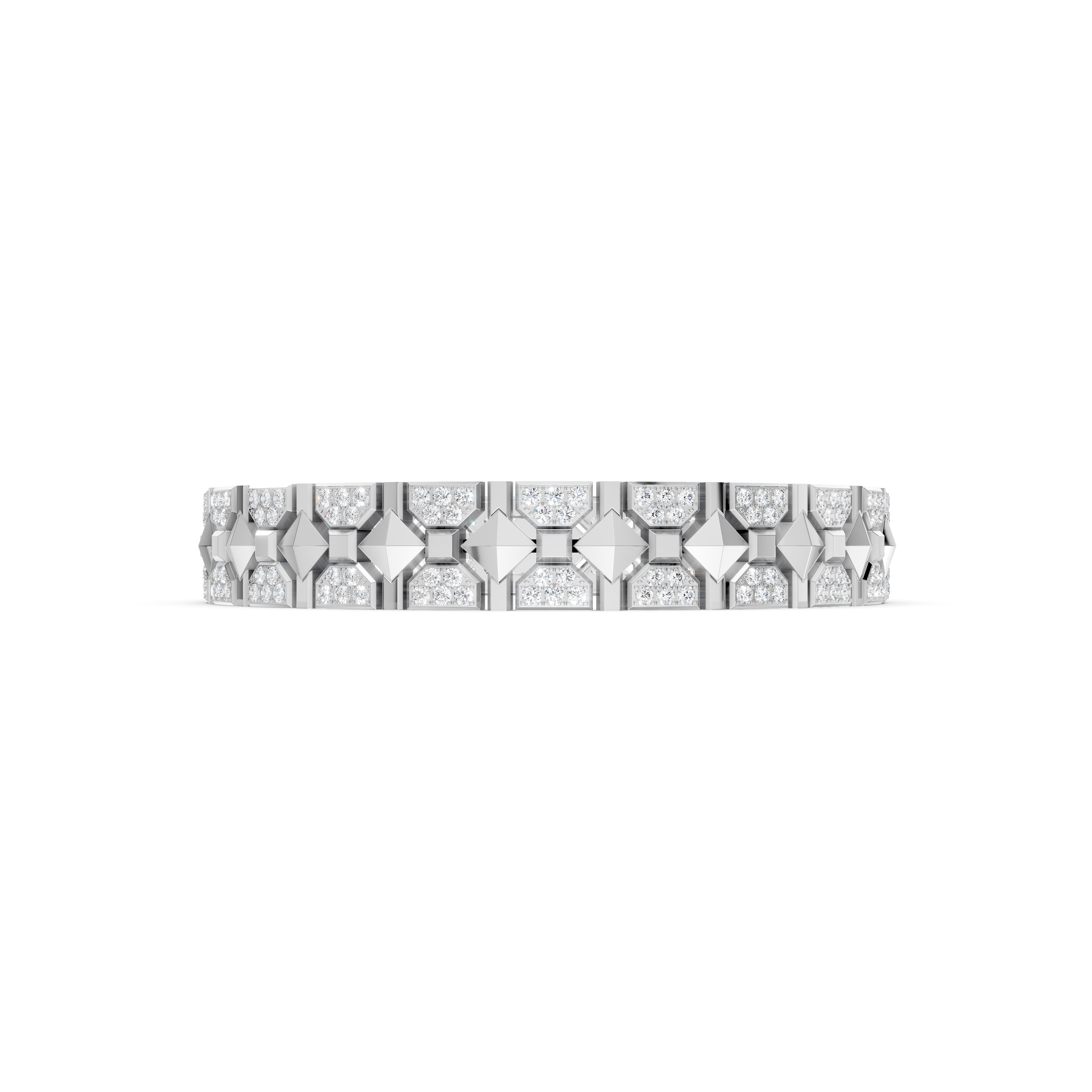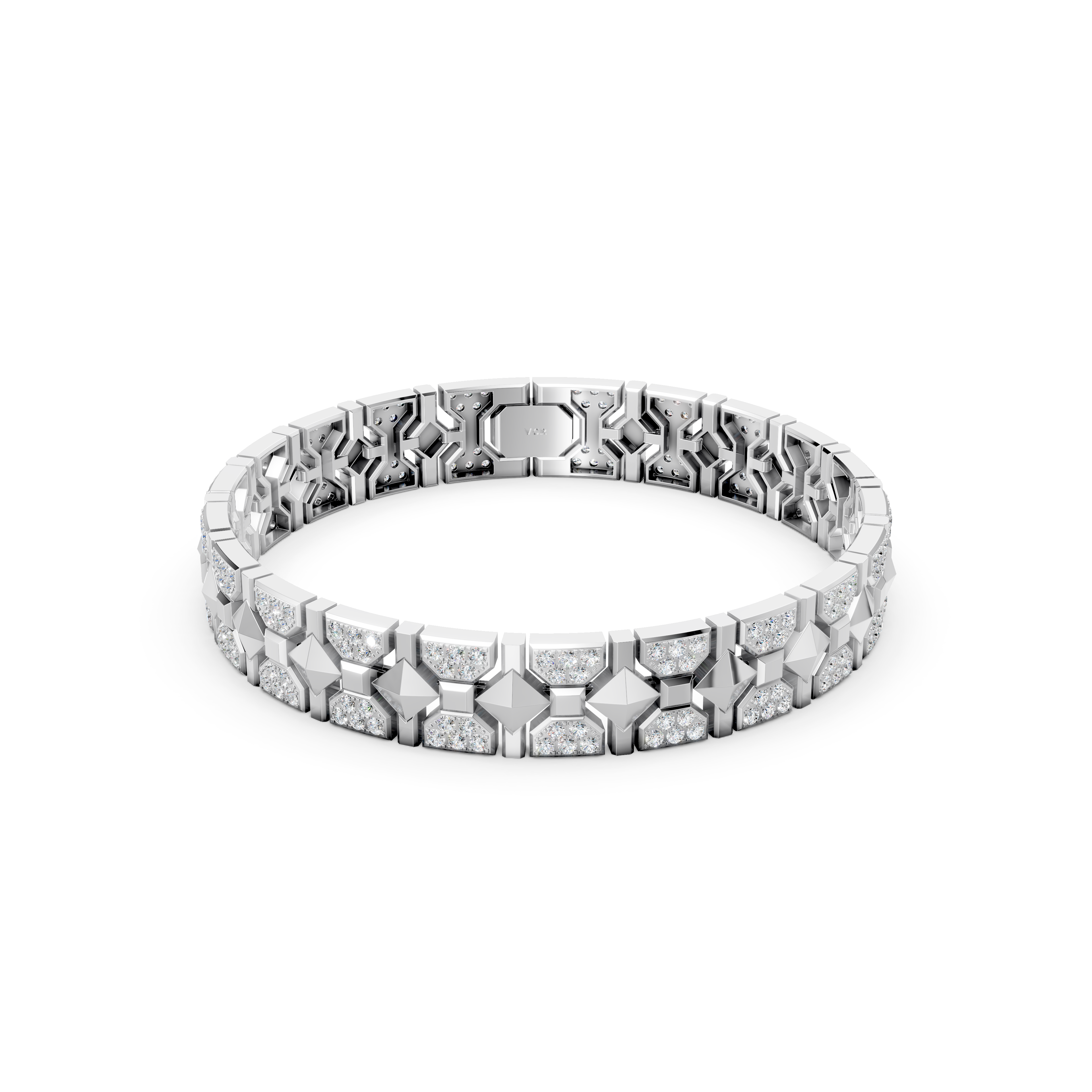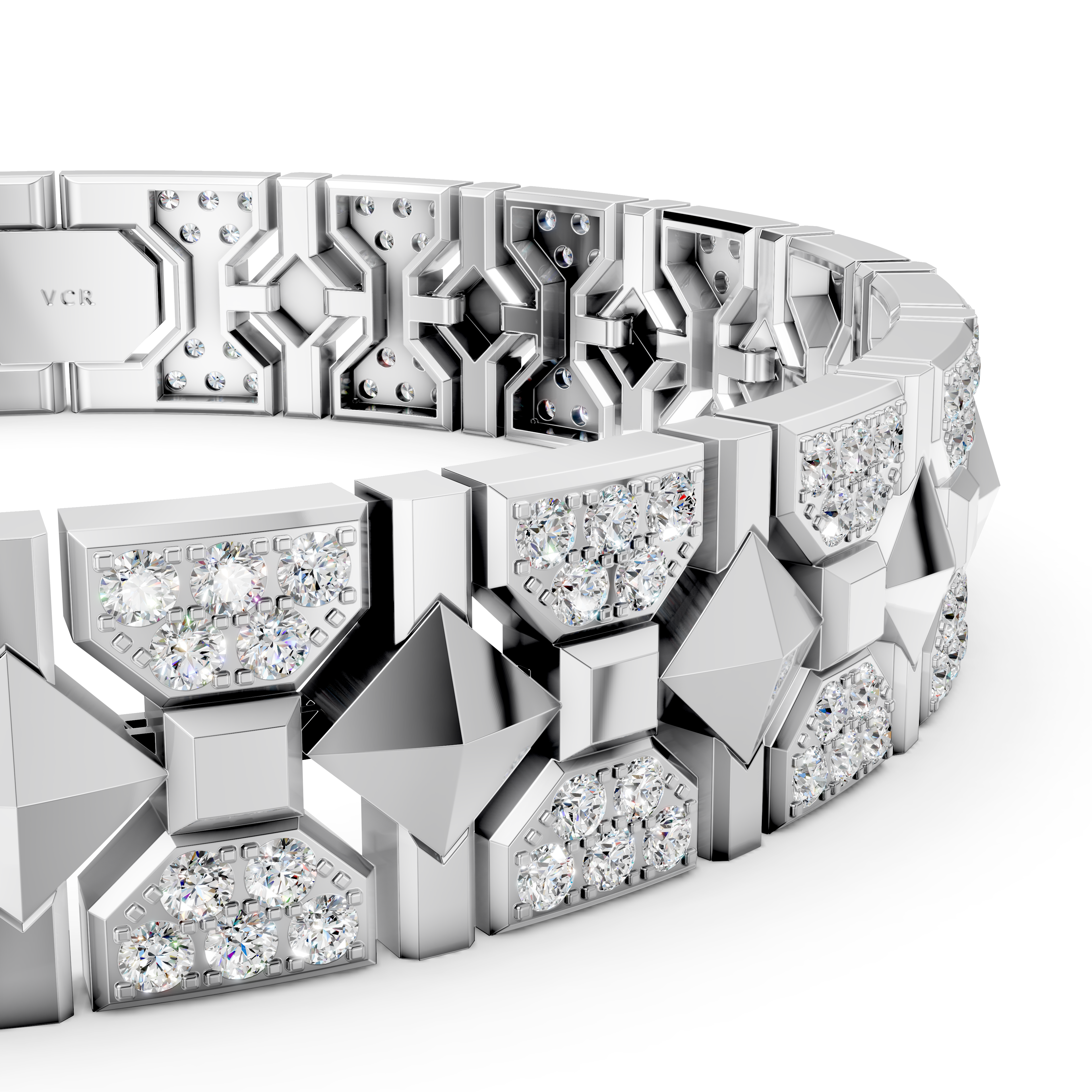 Lắc tay nam kim cương vàng trắng 18K VCR LA-0023 được thiết kế theo phong cách Bangle, là một kiệt tác mang đậm tính nghệ thuật và sự đẳng cấp. Món trang sức này khắc họa vẻ đẹp mạnh mẽ và kiên định, là biểu tượng cho tinh thần bền bỉ, ý chí không ngừng vươn lên để chinh phục những mục tiêu lớn lao.
