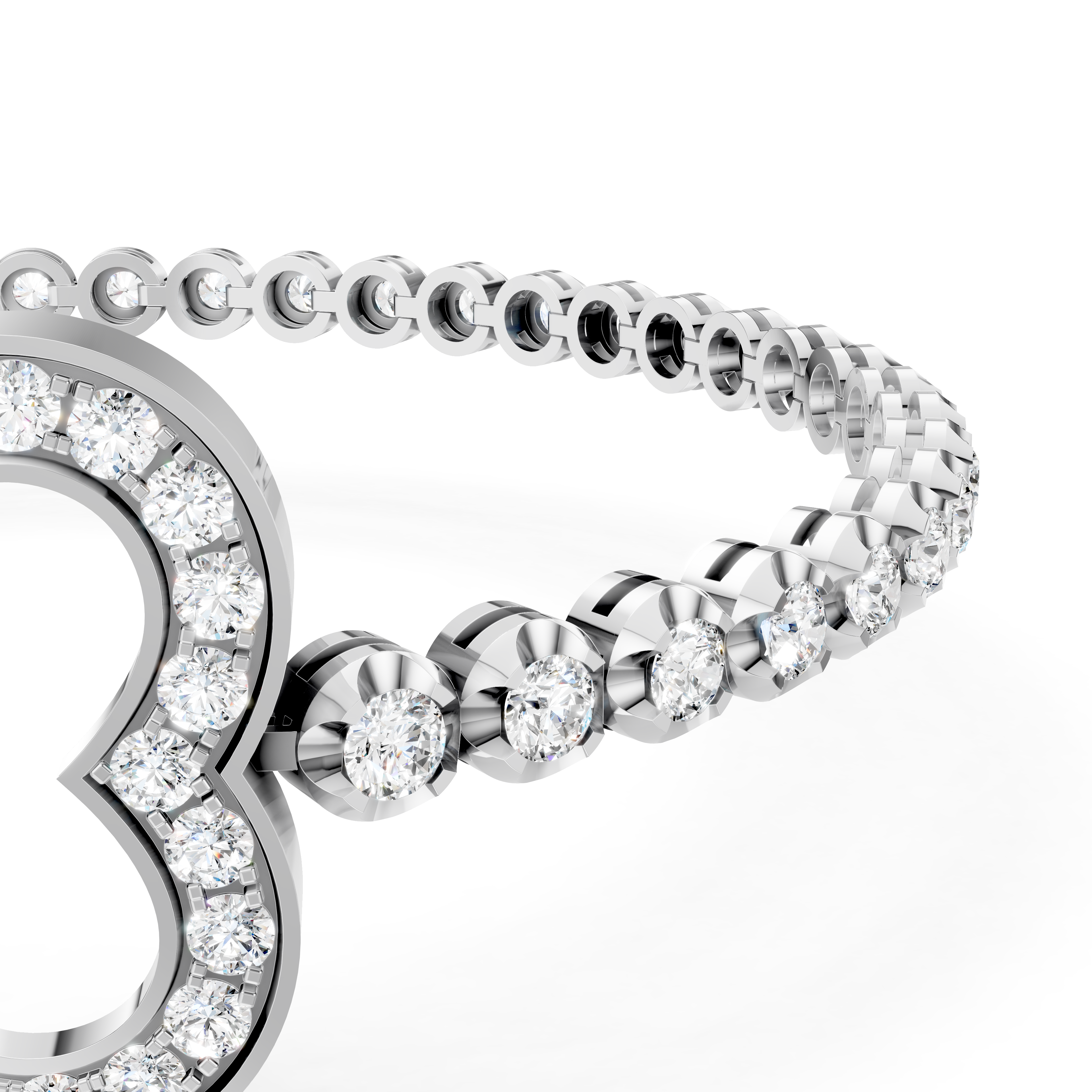 Lắc tay nữ VCR LN-0029 kết hợp hoàn hảo giữa sự tinh tế, sang trọng và vẻ đẹp lấp lánh của kim cương. Được chế tác từ vàng trắng 18K và đính gần một trăm viên kim cương tấm, mang đến sự quyến rũ, đẳng cấp và tôn vinh vẻ đẹp của người sở hữu.