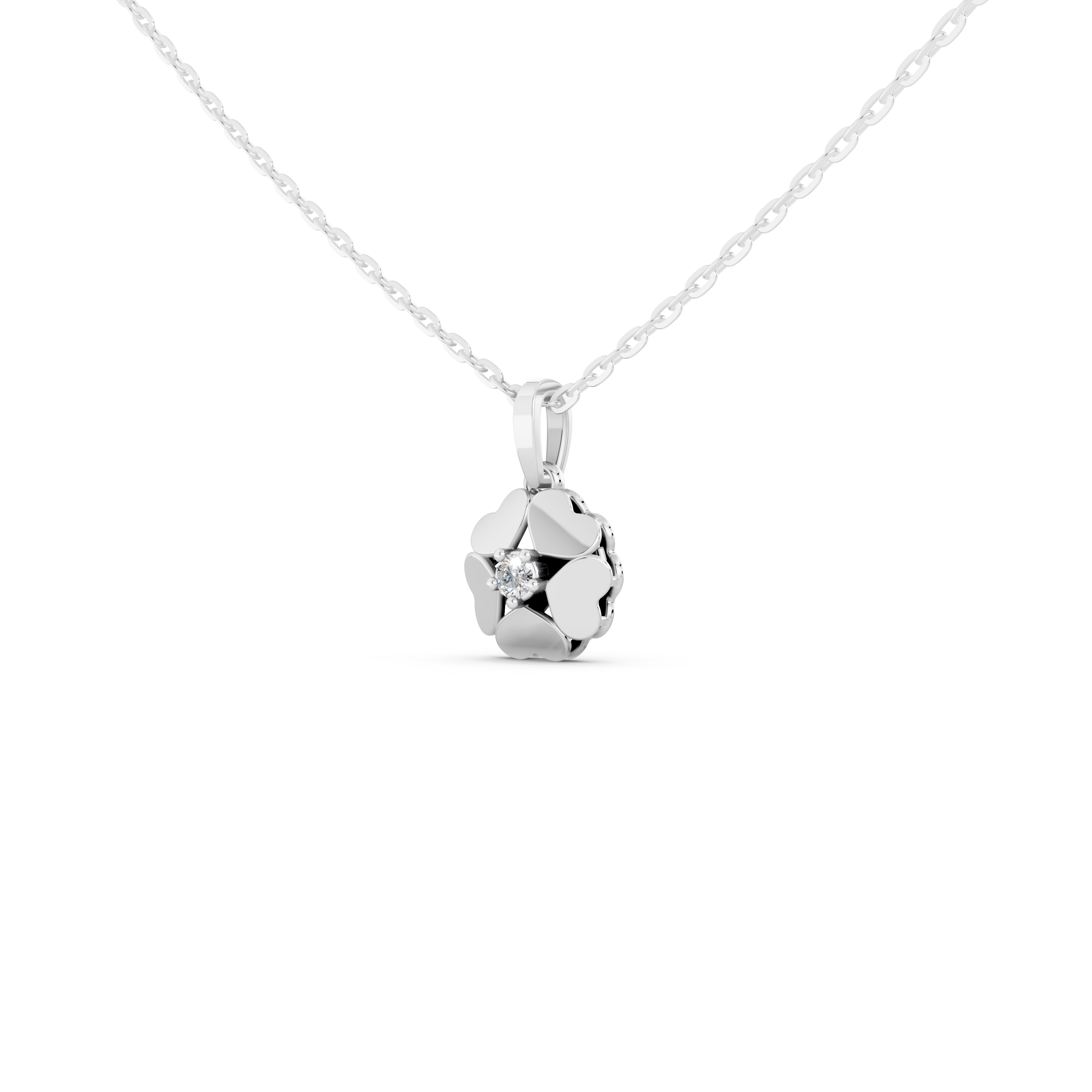 Mặt dây chuyền nữ VCR MN-0122 mang vẻ đẹp tinh xảo hơn và đẳng cấp hơn với những đường nét chau chuốt. Kiểu dáng thanh lịch, tinh tế với mặt dây chuyền được tạo hình một bông hoa trái tim xinh xắn. Viên kim cương chủ Round 2.6 ly nằm ở trung tâm, lấp lánh và tỏa sáng, tượng trưng cho tình yêu thuần khiết và chân thành. Bao quanh viên đá chủ là những cánh hoa hình trái tim được làm từ vàng trắng 14K, như đang bao bọc và nâng niu một nụ hoa xinh đẹp.