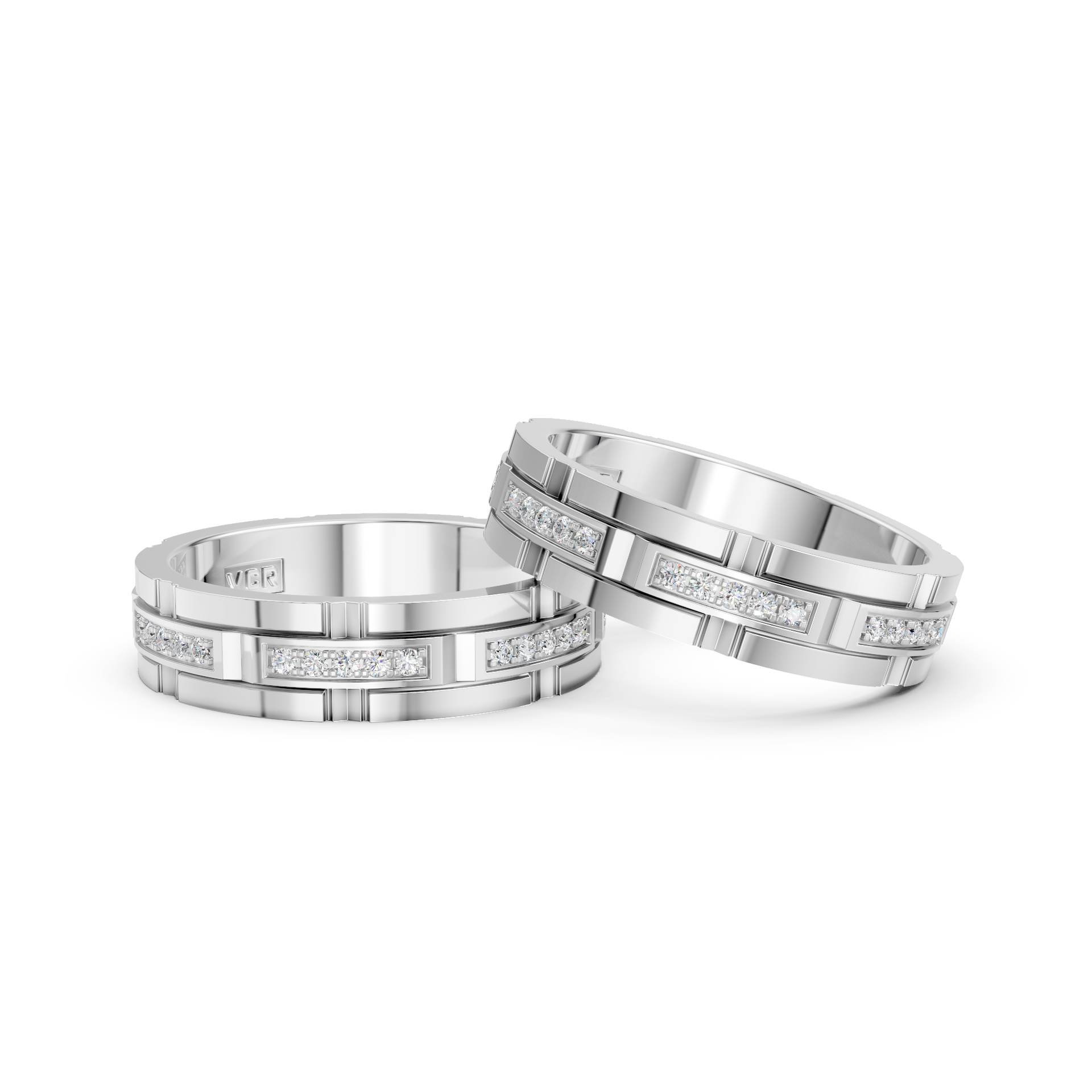 Nhẫn cưới Kim cương Vàng trắng 18K VCR CX-0176 ấn tượng