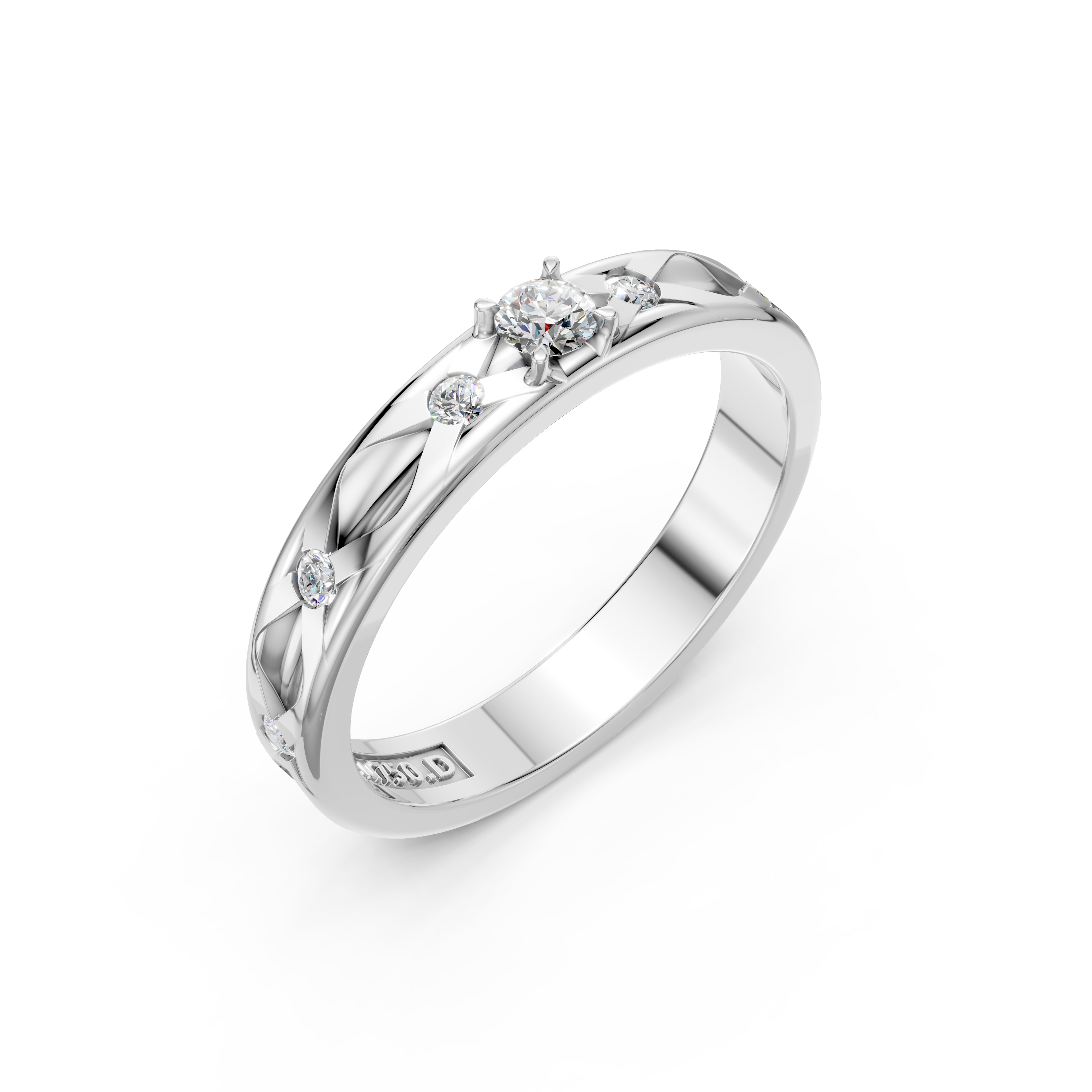 Mặt nhẫn được điểm xuyết bằng một viên kim cương chủ lấp lánh, tạo nên vẻ đẹp thu hút mọi ánh nhìn. Đai nhẫn được chế tác với những đường đan chéo ấn tượng, mang lại sự độc đáo và mạnh mẽ, tạo cảm giác chắc chắn, tinh tế hơn. Một sự khác biệt thú vị giữa mẫu nhẫn nam và nhẫn nữ trong thiết kế này là trên đai nhẫn nữ đính kết những viên kim cương tấm nhỏ để tăng thêm phần quyến rũ.