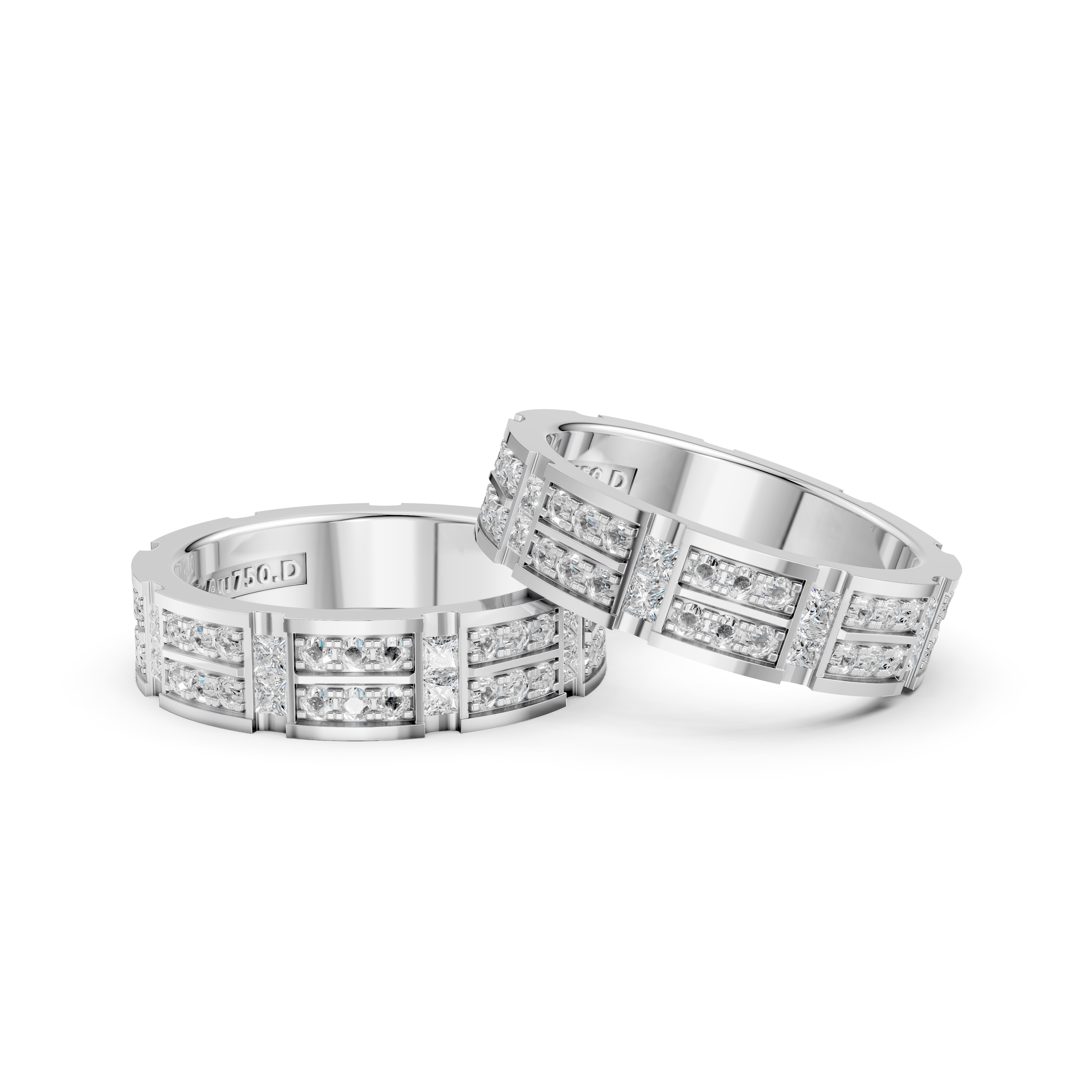 Kim cương cao cấp: Nhẫn cưới CX-0274 được trang trí với 54 viên kim cương Round và 18 viên kim cương Princess được sắp xếp hoàn mỹ trên đai nhẫn, điều này không chỉ tăng thêm giá trị về mặt thẩm mỹ mà còn biểu tượng cho sự vĩnh cửu, bền chặt trong tình yêu.