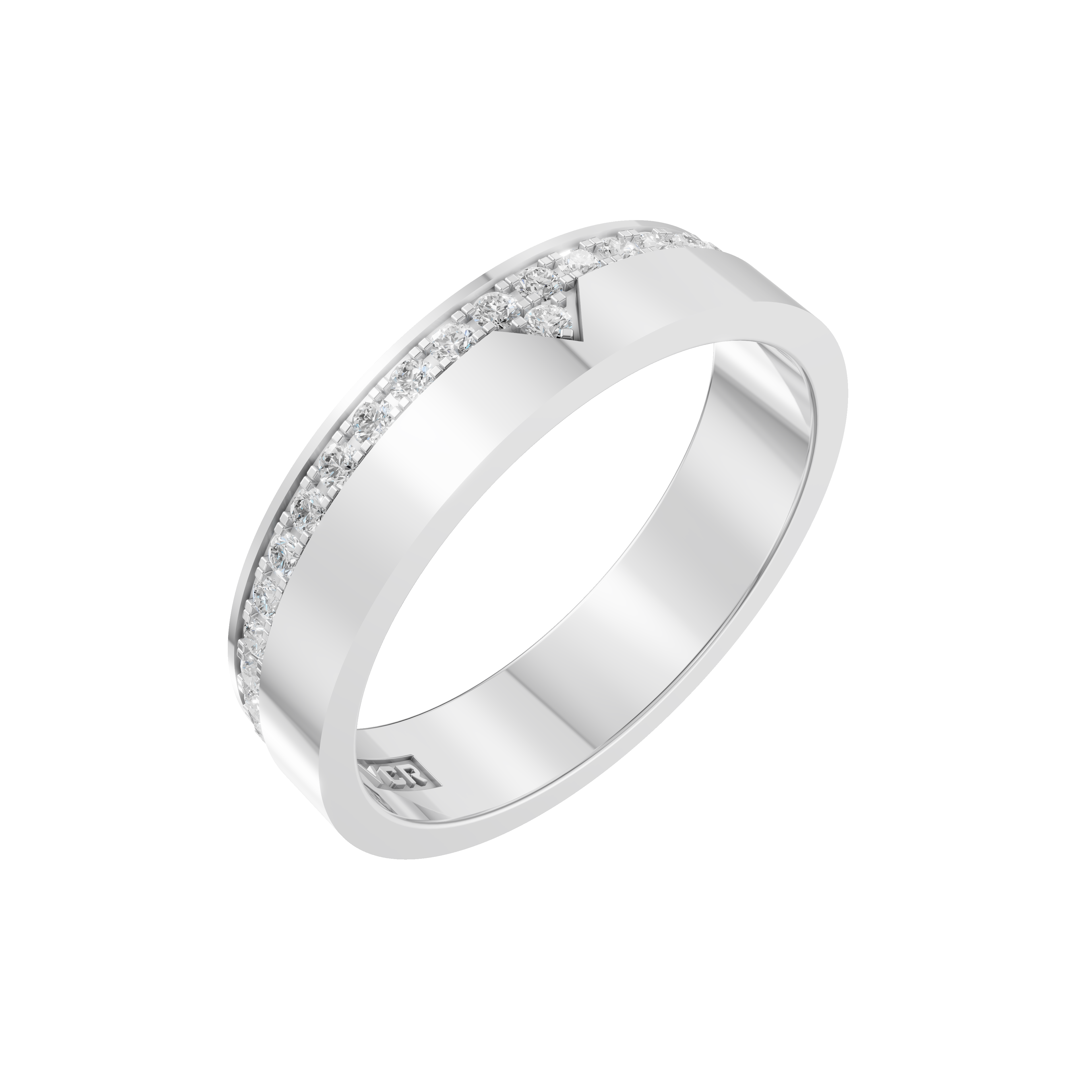 Chất liệu cao cấp Vàng trắng 18K, kim cương lấp lánh cùng sự tỉ mỉ trong chế tác của nhẫn đã mang đến một tác phẩm trang sức hoàn mỹ với vẻ đẹp tinh xảo hơn, đẳng cấp hơn. Món trang sức này dành riêng cho những quý ông yêu thích vẻ đẹp sang trọng và tinh tế. Đai nhẫn được thiết kế với kiểu dáng thanh lịch, đơn giản nhưng đầy cuốn hút. Đặc biệt, sự nổi bật của chiếc nhẫn nằm ở dải kim cương Round 1.4 ly được đính kết tỉ mỉ, trải dài quanh phần thân nhẫn.