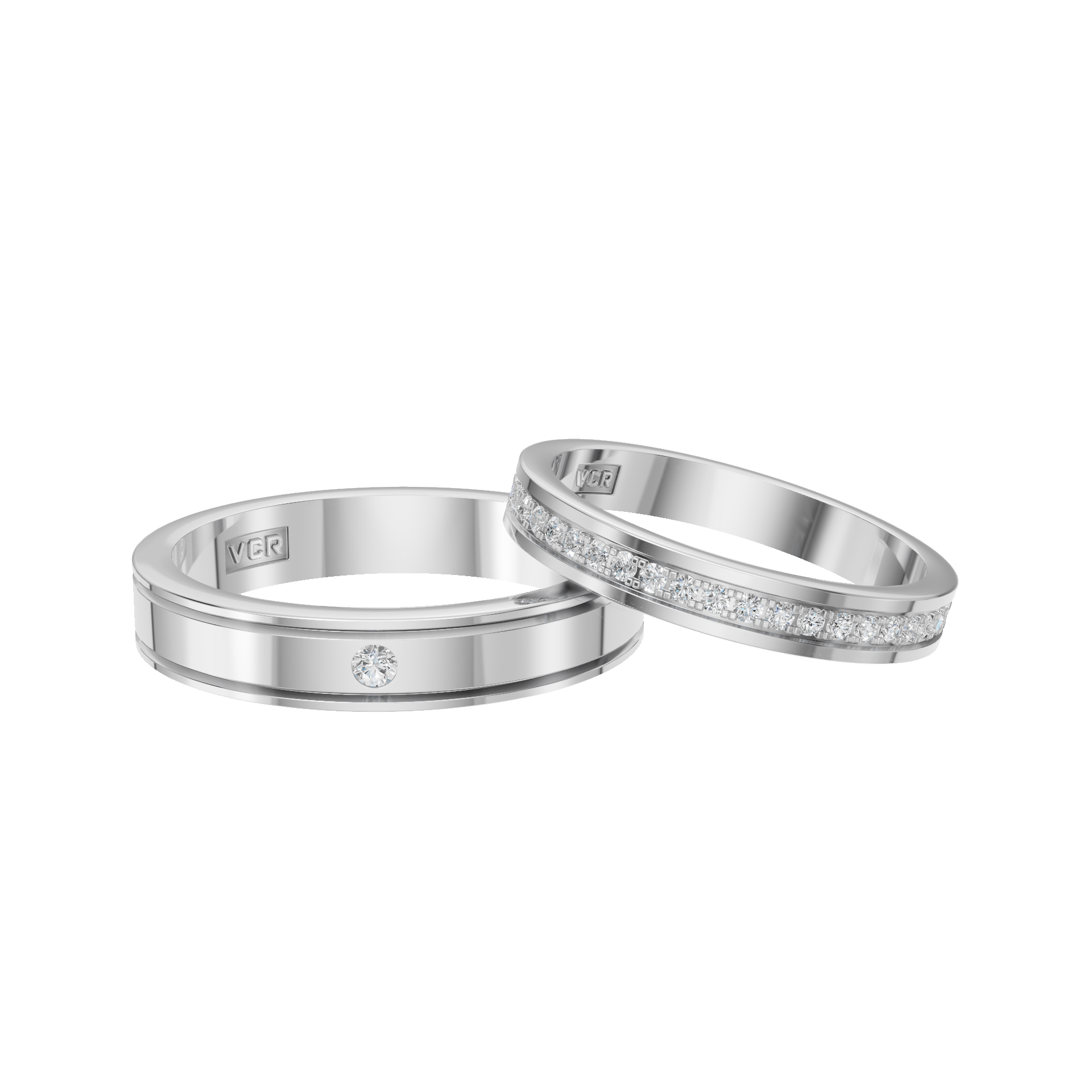 Nhẫn cưới nam Kim cương Vàng trắng 18K VCR CA-0321 sang trọng