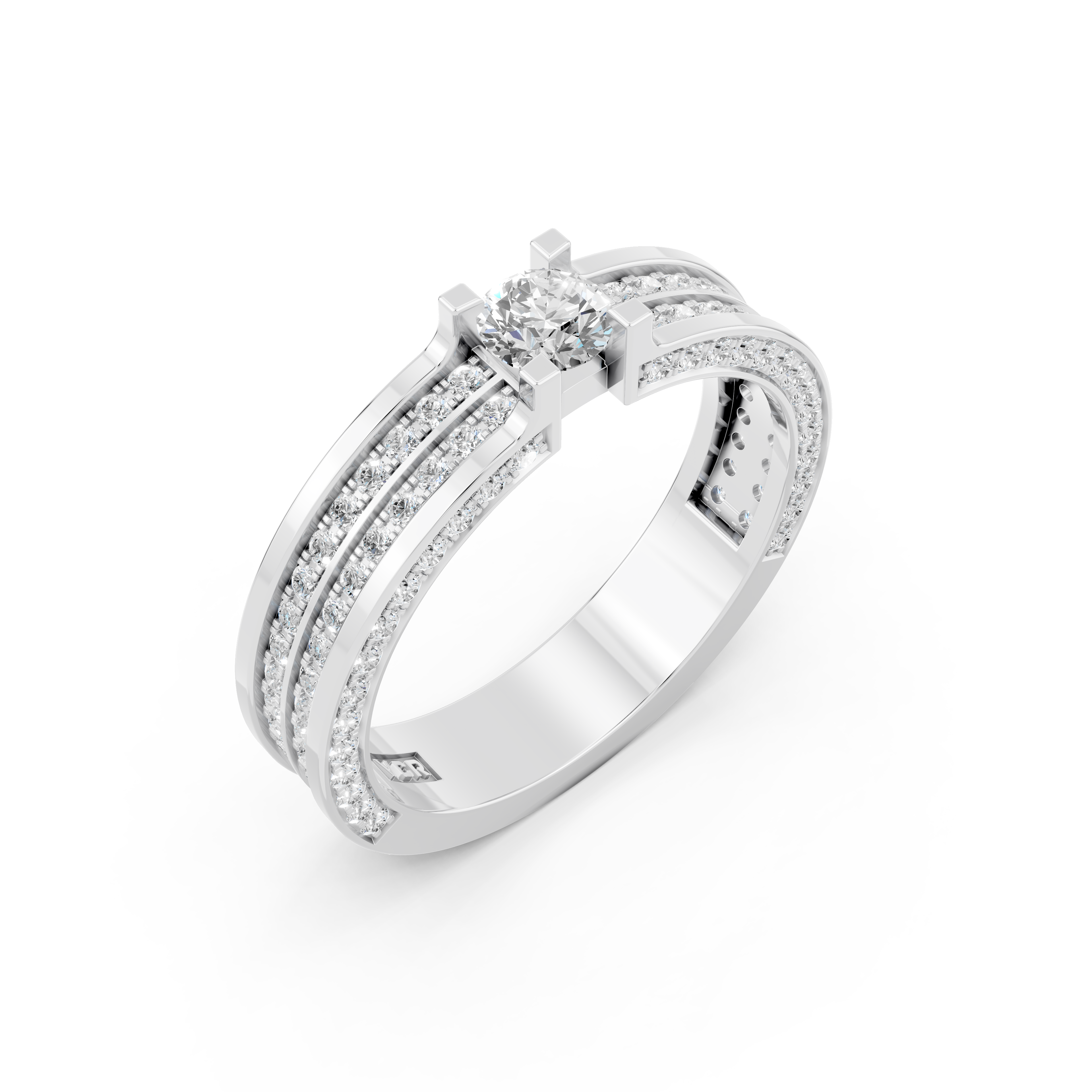 Điểm đặc biệt của thiết kế này chính là ở cạnh bên của đai nhẫn đính kết tỉ mỉ 116 viên kim cương 1.0 ly. Những viên đá nhỏ lấp lánh tạo nên sự tinh tế, làm tăng thêm vẻ đẹp hoàn hảo cho chiếc nhẫn, làm cho mỗi chuyển động của người đeo trở nên lấp lánh, nổi bật.