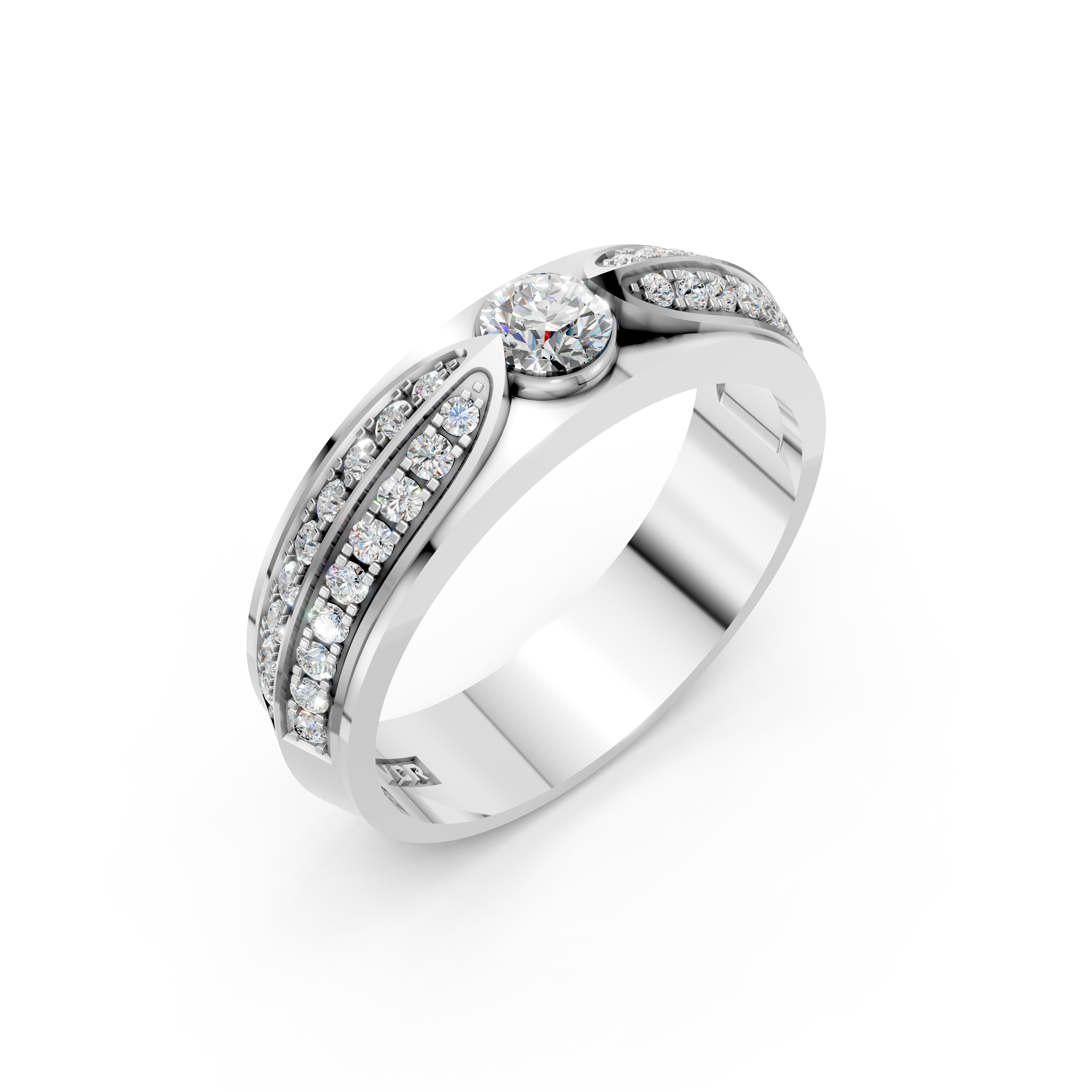 Điểm nhấn ấn tượng của nhẫn cưới CN-0233 chính là viên kim cương chủ rực rỡ, tỏa sáng lấp lánh như vẻ đẹp vĩnh cửu của tình yêu. Phần đai nhẫn được đính kết hai dải kim cương Round nhỏ xinh, tạo nên sự đối xứng hoàn hảo, tôn vinh vẻ đẹp tuyệt mỹ của món trang sức này. Chiếc nhẫn thể hiện sự tỉ mỉ trong từng chi tiết, kết hợp hoàn hảo giữa chất liệu vàng trắng 18K và nghệ thuật chế tác tinh xảo, làm nổi bật sự đẳng cấp của người sở hữu.