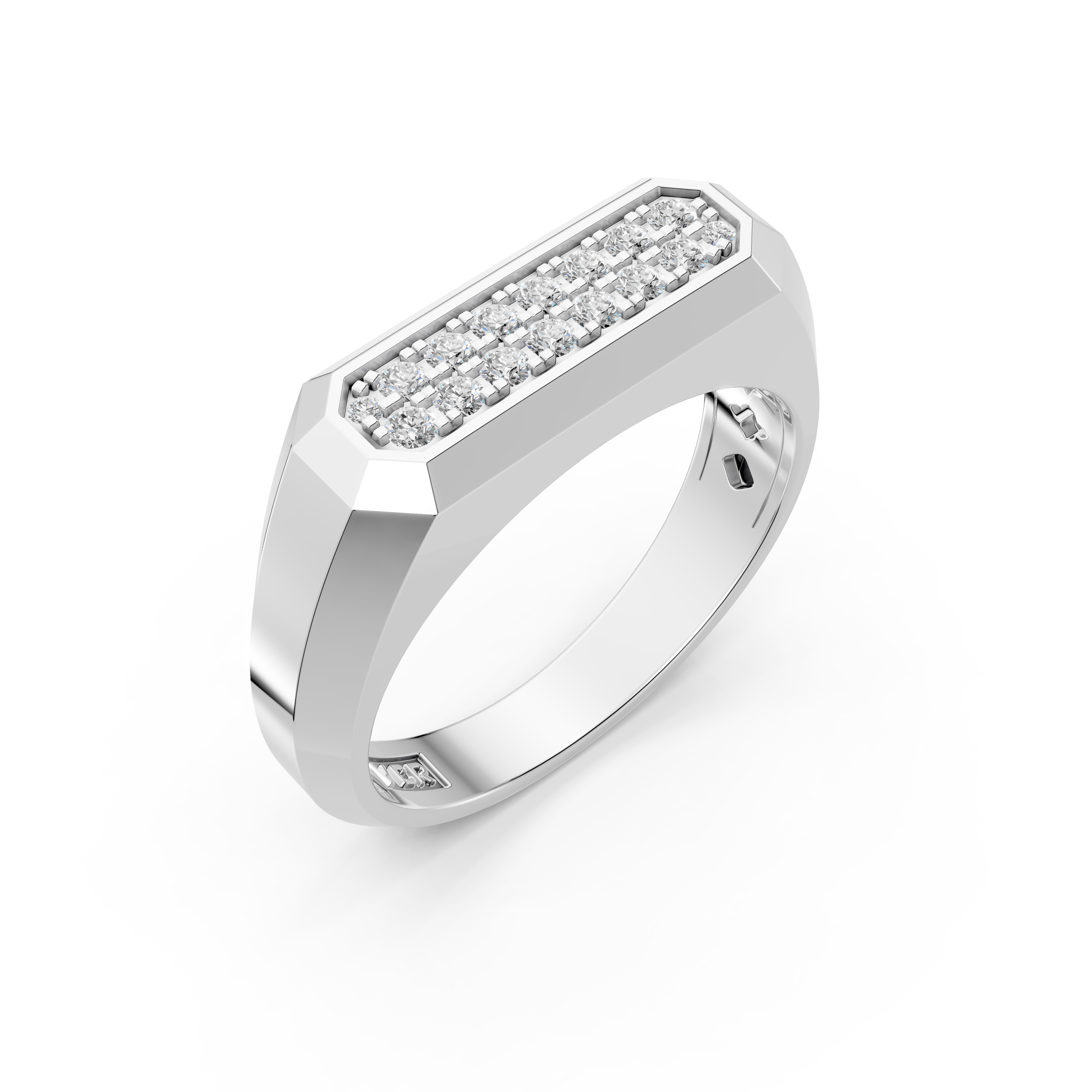 Phần mặt nhẫn nổi bật với hai dải kim cương Round lấp lánh được đính kết tinh tế, tạo hiệu ứng ánh sáng rực rỡ như lời chúc phúc cho hạnh phúc lứa đôi. Những viên kim cương được chọn lọc và sắp xếp tỉ mỉ để đảm bảo độ hoàn hảo tuyệt đối, mang đến vẻ lộng lẫy và cuốn hút. Đai nhẫn trơn, mượt mà, làm nổi bật sự tinh tế và sang trọng của toàn bộ thiết kế.