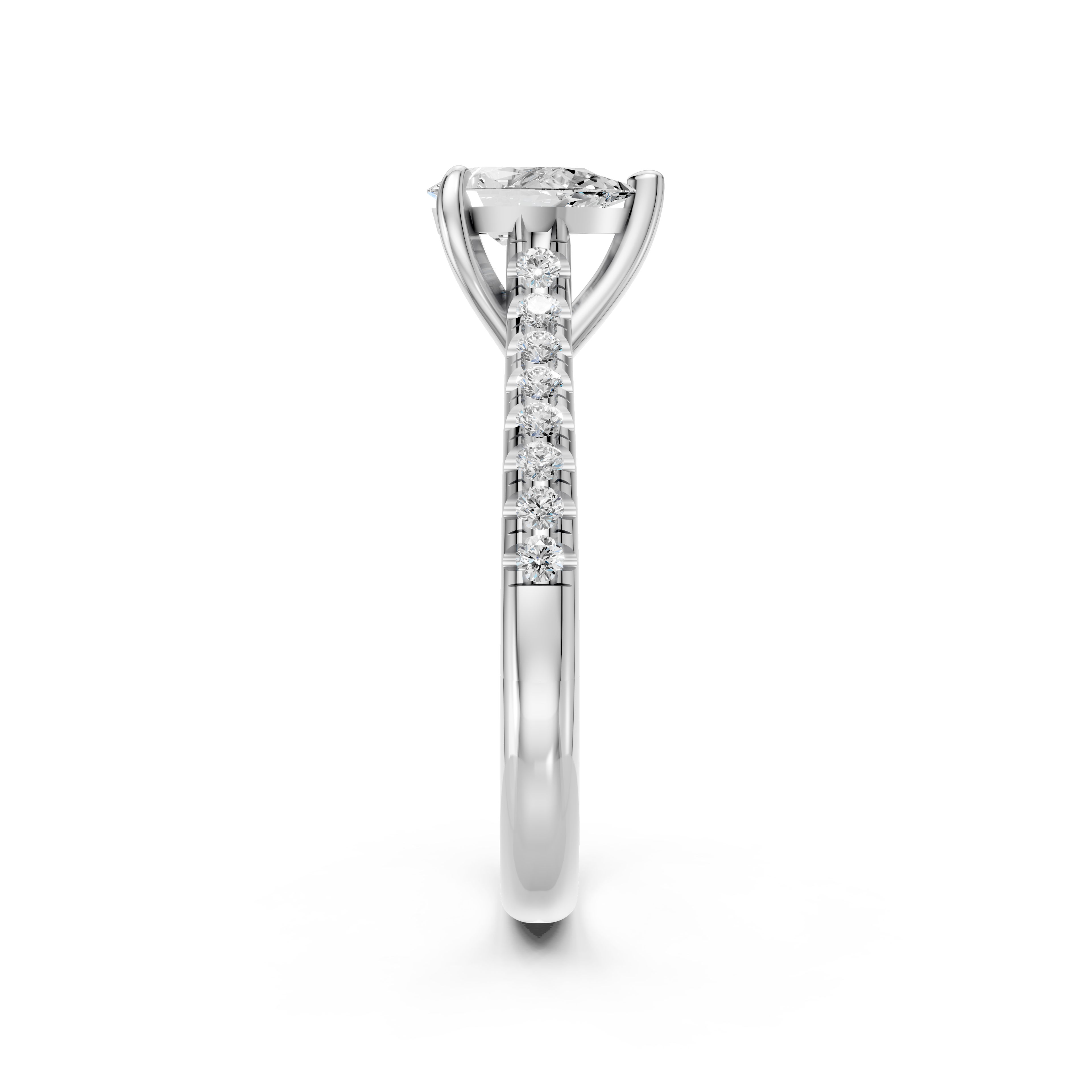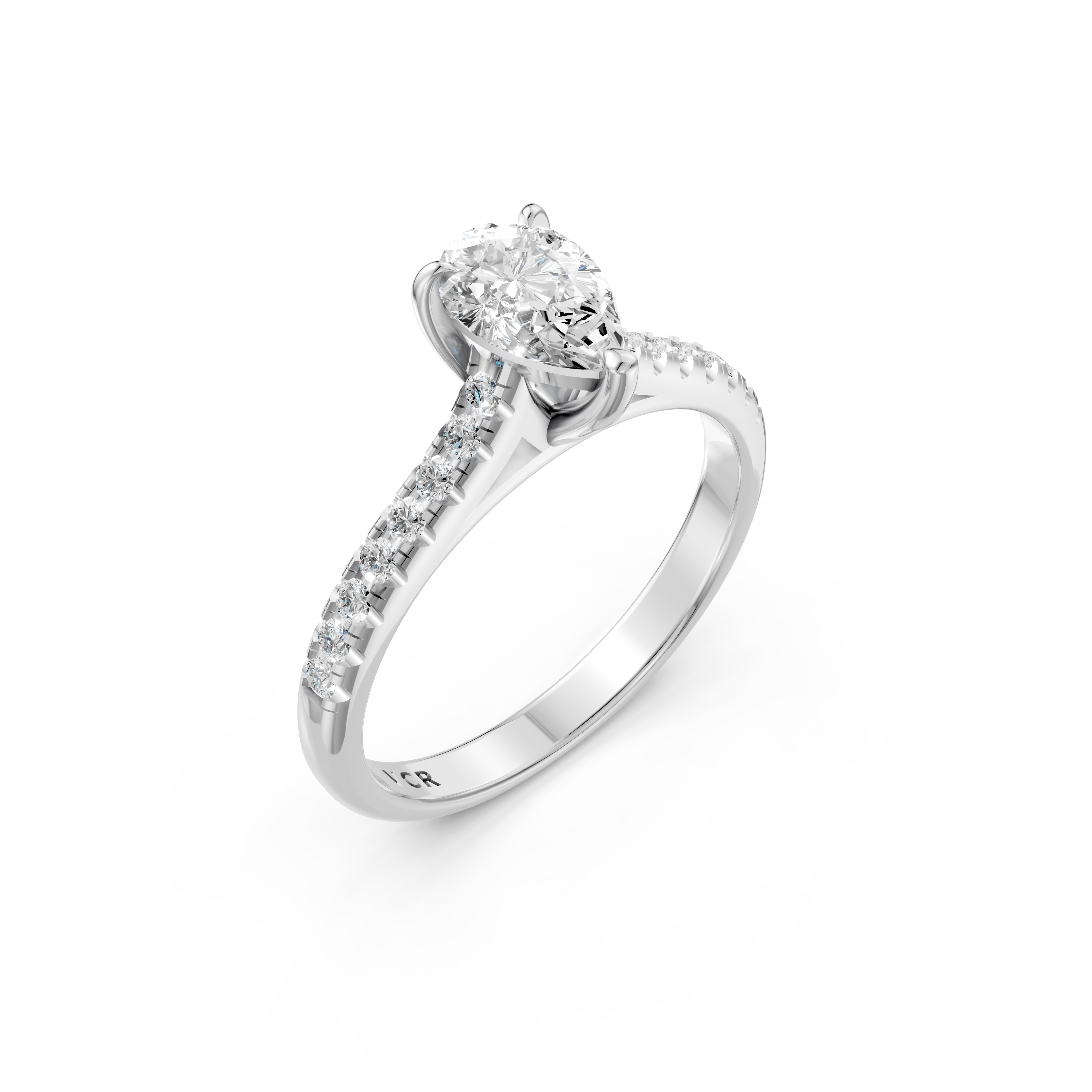 Nhẫn đính hôn NH-0011 sở hữu viên kim cương chủ hình Pear độc đáo, mang lại sự phản chiếu ánh sáng mạnh mẽ, giống như ngọn lửa rực rỡ của tình yêu. Dây nhẫn thanh mảnh, ôm lấy viên kim cương chủ, tạo sự hài hòa và tinh tế, trong khi những viên kim cương nhỏ bao bọc quanh nhẫn làm tăng thêm vẻ đẹp lấp lánh. Mỗi chi tiết của chiếc nhẫn đều được chạm khắc một cách tỉ mỉ và tinh xảo hơn, tạo nên một món trang sức đẳng cấp, nổi bật nhưng lại không kém phần thanh thoát.