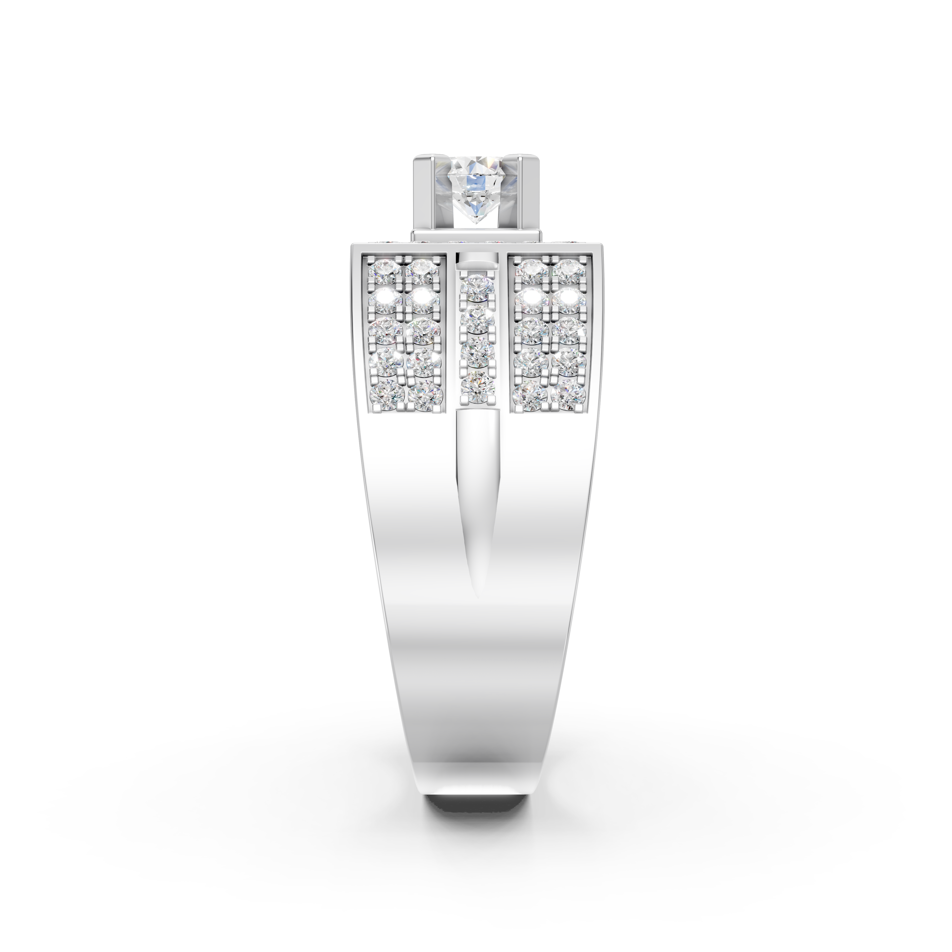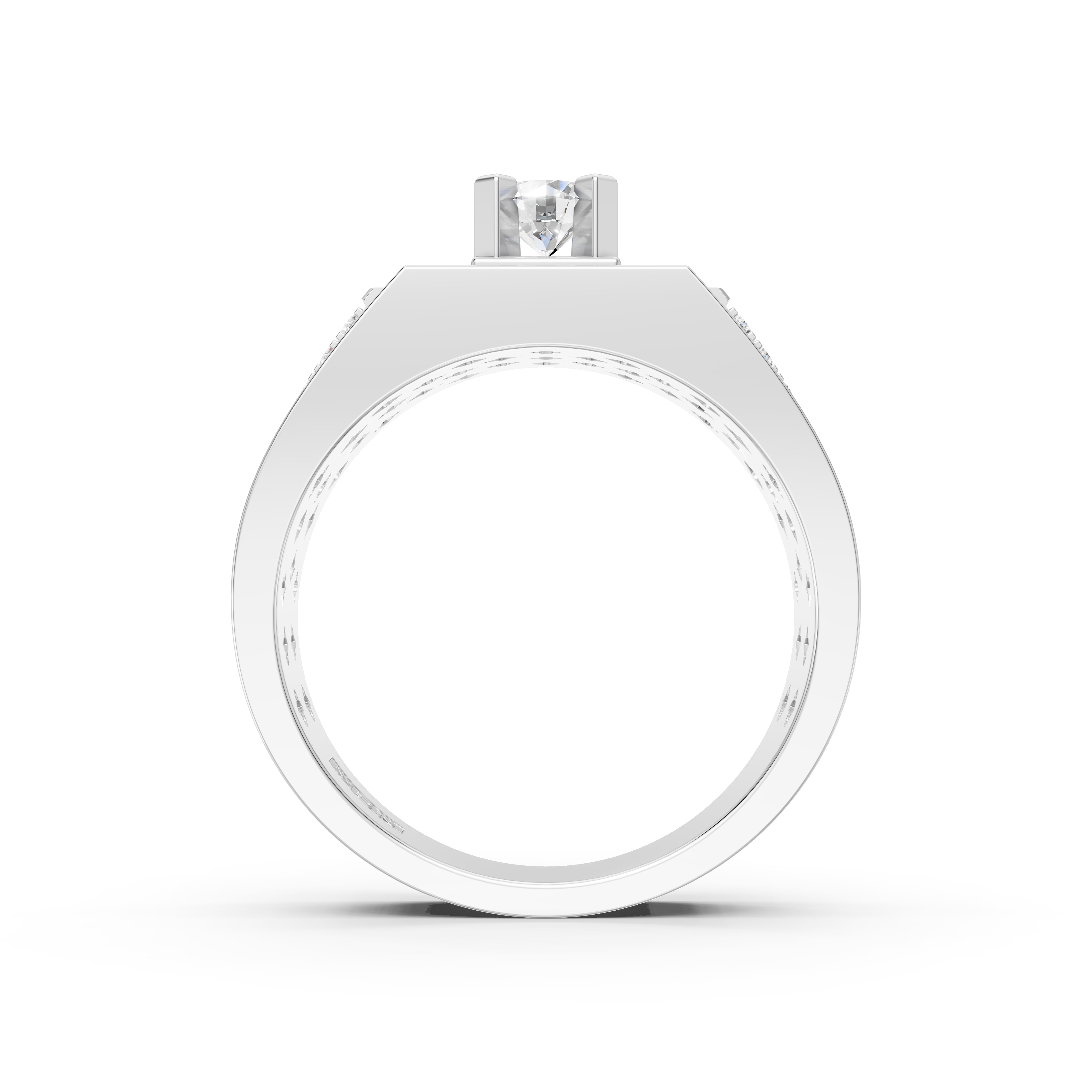 Chiếc nhẫn kim cương vuông NA-0358 được lấy cảm hứng từ tấm khiên kiên cố, biểu tượng của sự bảo vệ và sức mạnh vững chãi. Các đường nét vuông vức, mạnh mẽ kết hợp cùng phong cách kiến trúc cổ điển gợi lên hình ảnh của những công trình nguy nga, đầy uy quyền. Mỗi chi tiết là sự tôn vinh tinh thần bản lĩnh, không ngại đối mặt với thử thách của người đàn ông thành đạt, đồng thời thể hiện tinh thần bảo vệ những giá trị quan trọng trong cuộc sống.