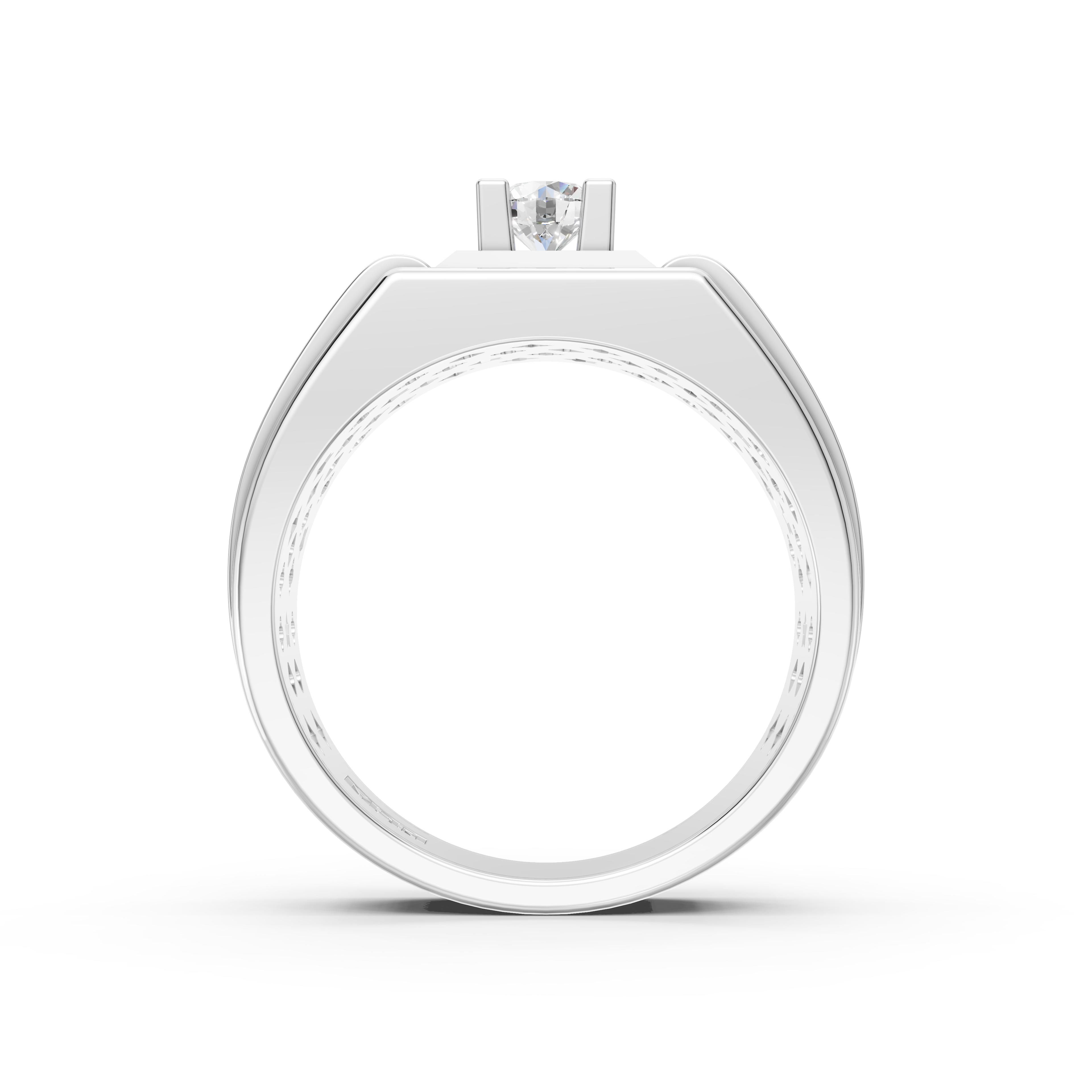 Nhẫn nam NA-0371 là biểu tượng của sự mạnh mẽ và đẳng cấp với thiết kế Square vuông vức, mang vẻ đẹp tinh xảo hơn, đẳng cấp hơn. Tâm điểm của nhẫn là viên kim cương chủ 4.5 ly được cắt gọt tinh tế, tỏa sáng lấp lánh, thu hút mọi ánh nhìn. Phần đai nhẫn được điểm xuyết hai dải kim cương Round nhỏ, được sắp xếp đều đặn, tạo nên sự cân đối hoàn hảo và tăng thêm vẻ sang trọng. Chất liệu vàng trắng 14K mang lại sự bền bỉ, sáng bóng, tôn lên vẻ đẹp vượt thời gian của thiết kế.