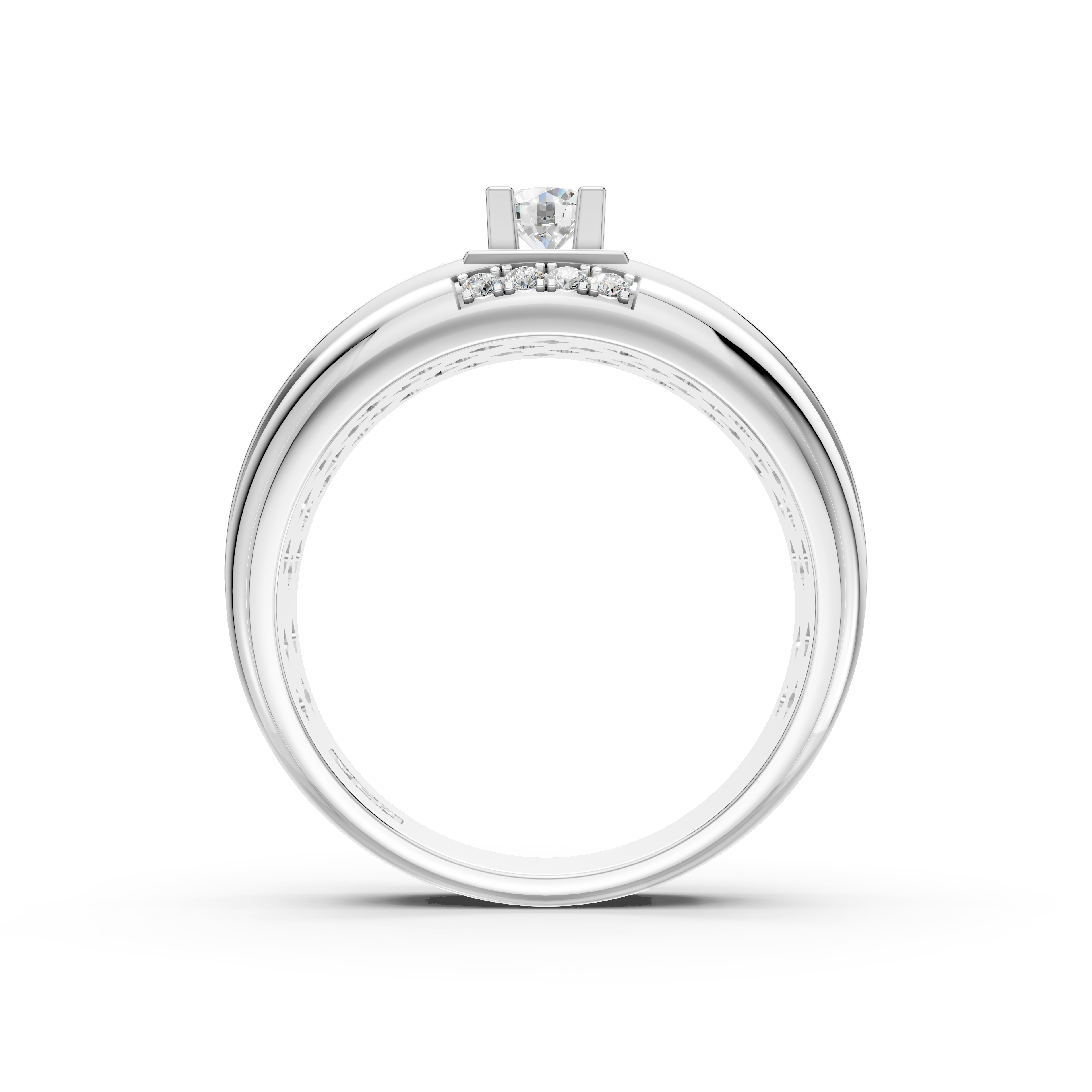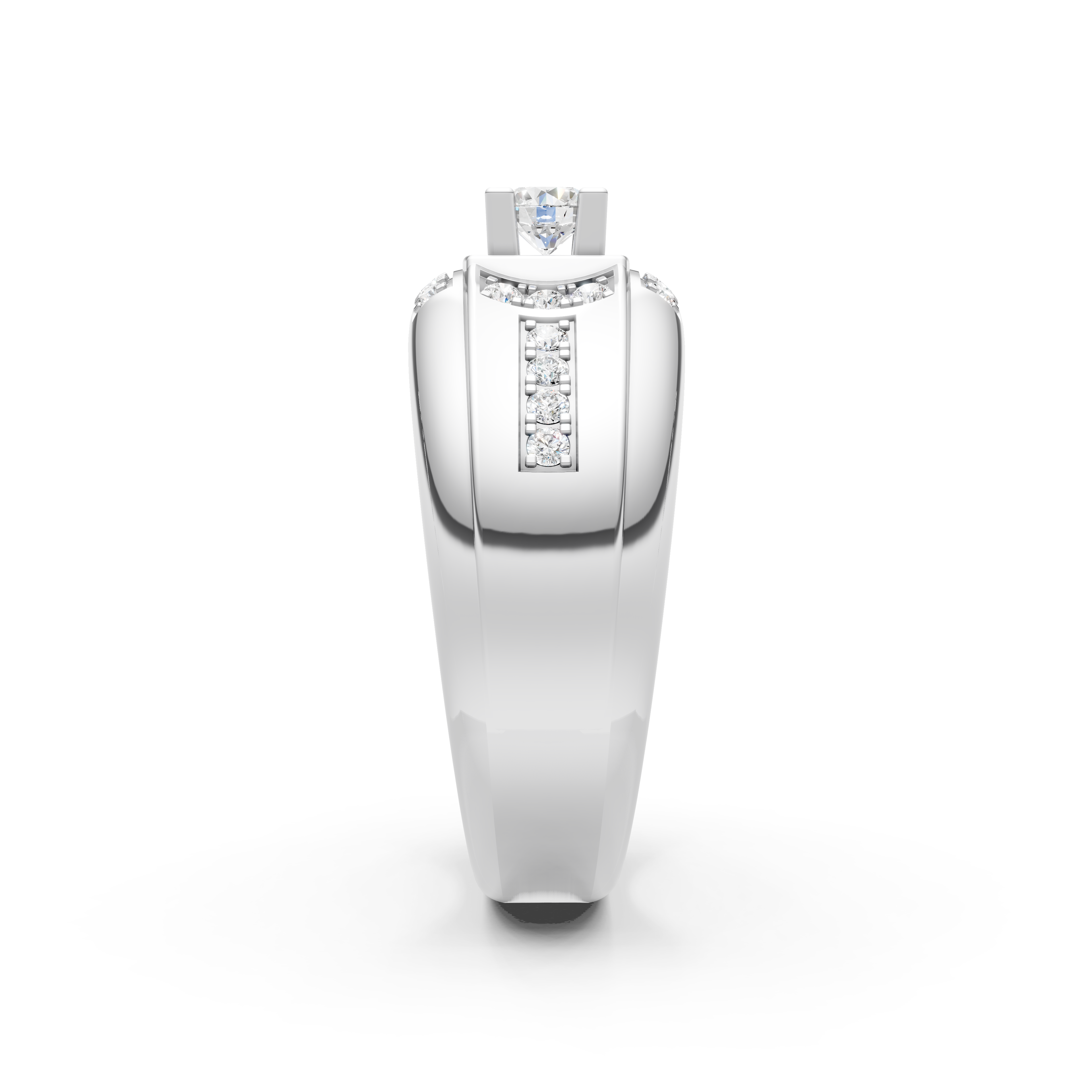 Thiết kế của nhẫn là sự kết hợp hoàn hảo giữa phong cách cổ điển và sự hiện đại. Với kiểu dáng Circle đầy mạnh mẽ, chiếc nhẫn tạo ra một tổng thể tinh xảo hơn, đẳng cấp hơn bao giờ hết. Những viên kim cương Round tỏa sáng đều đặn trong khuôn vàng trắng 14K, mang đến vẻ đẹp quyền quý, tôn lên sức mạnh của người đàn ông. Cảm giác mạnh mẽ và sang trọng thể hiện qua từng chi tiết nhỏ, khiến chiếc nhẫn này trở thành biểu tượng của sự tự tin và kiên cường.