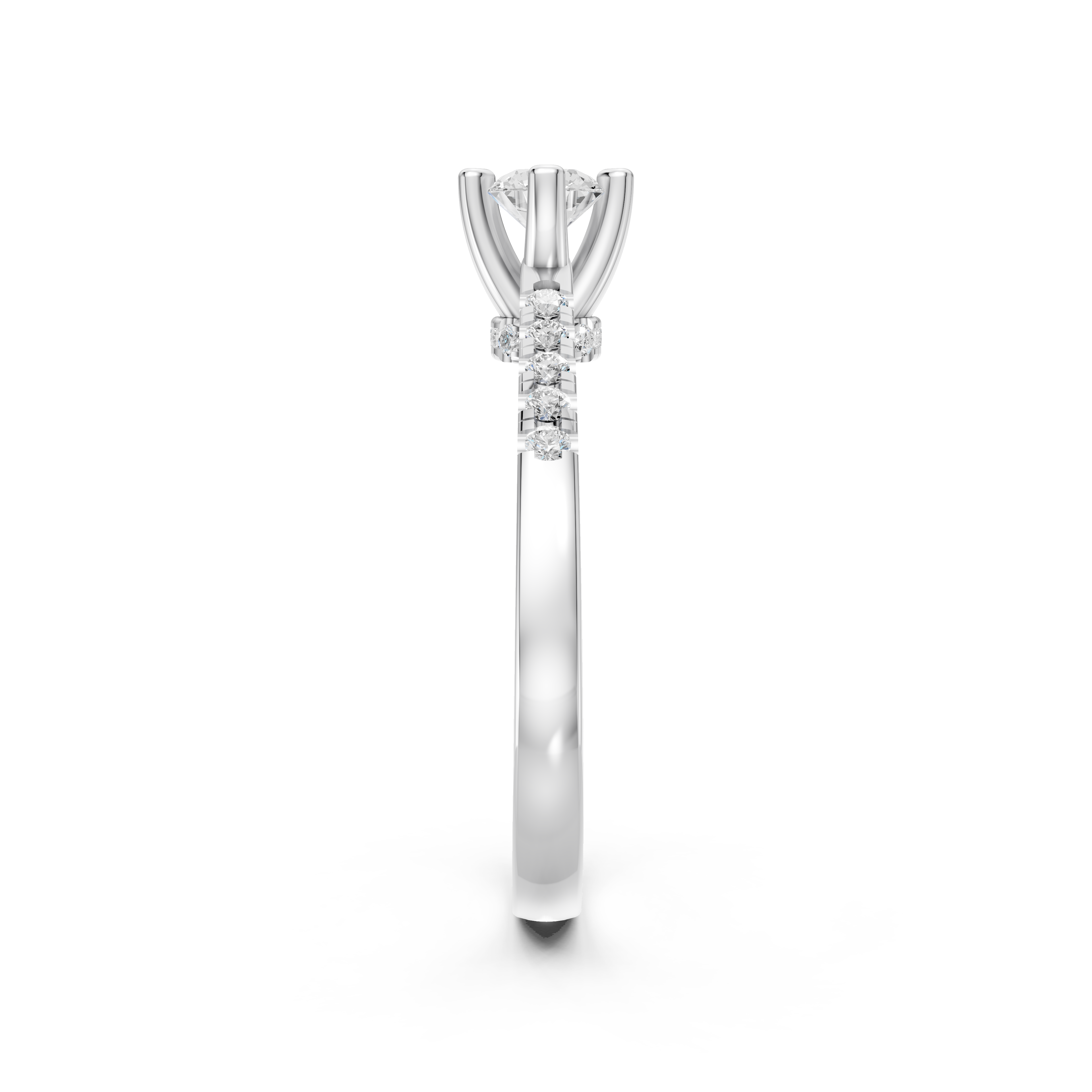Nhẫn nữ NN-0644 được thiết kế một cách chỉn chu, tôn lên vẻ đẹp tinh xảo hơn và đẳng cấp hơn của trang sức chế tác riêng. Thiết kế Solitaire của chiếc nhẫn nổi bật với một viên kim cương chủ tinh tế nằm trên 4 chấu chắc chắn, tạo sự vững chãi và tôn lên vẻ đẹp lấp lánh. Đai nhẫn được đính kết kim cương Round, phản chiếu ánh sáng rực rỡ, làm nổi bật sự sang trọng, quý phái của thiết kế. Một điểm đặc biệt để gia tăng vẻ đẹp cho tổng thể sản phẩm chính là một dải kim cương tấm nhỏ xinh bao quanh ổ chủ.