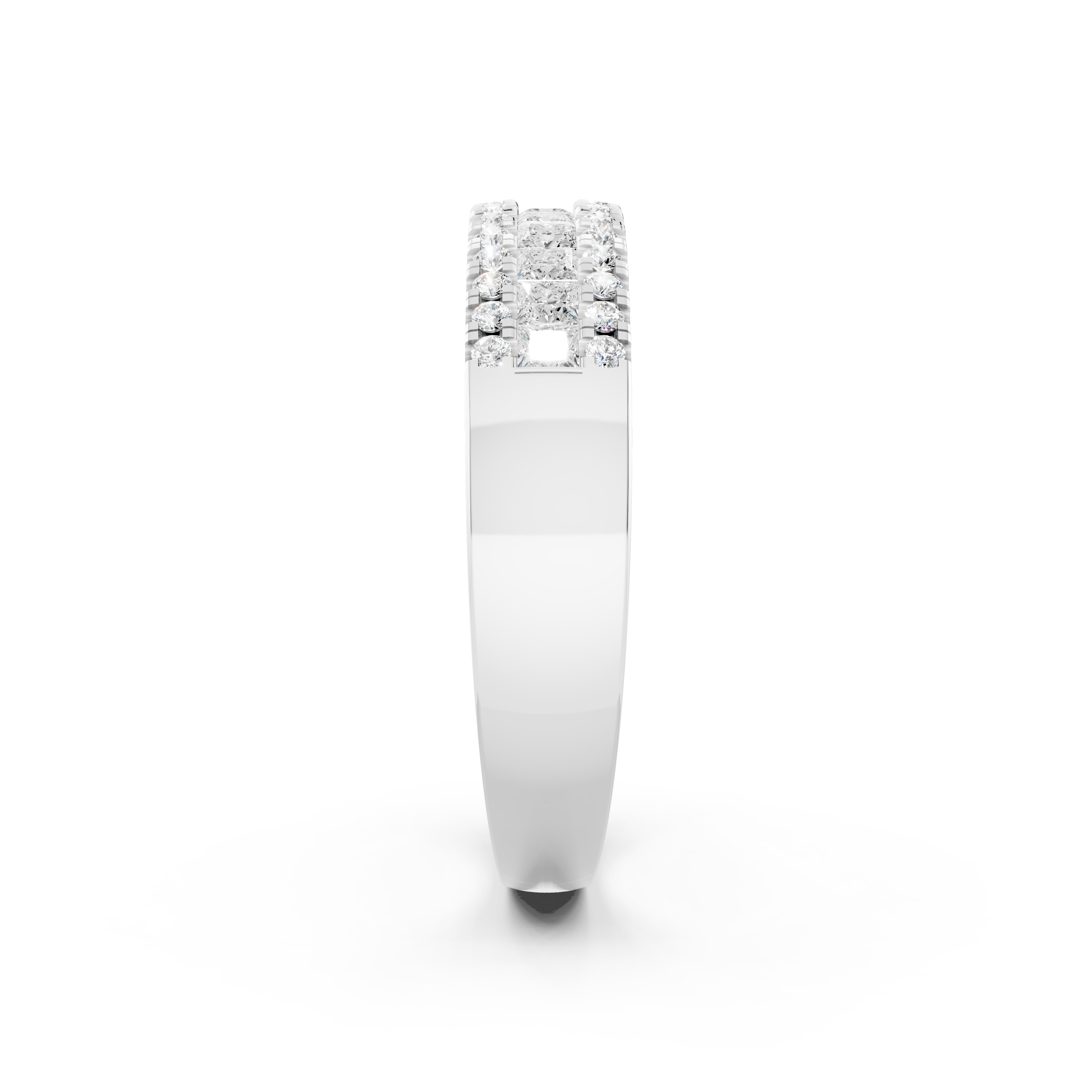 Nhẫn nữ NN-0649 là một tuyệt phẩm được chế tác công phu, mang đến vẻ đẹp tinh xảo hơn, đẳng cấp hơn. Với kiểu dáng Pave đầy ấn tượng, chiếc nhẫn nổi bật nhờ thiết kế độc đáo ở phần đai nhẫn, trong đó một dải kim cương Princess được đặt tinh tế ở trung tâm, nằm giữa hai dải kim cương Round lấp lánh. Sự kết hợp này không chỉ tạo nên hiệu ứng thị giác bắt mắt mà còn làm nổi bật sự sang trọng và hài hòa trong tổng thể thiết kế.