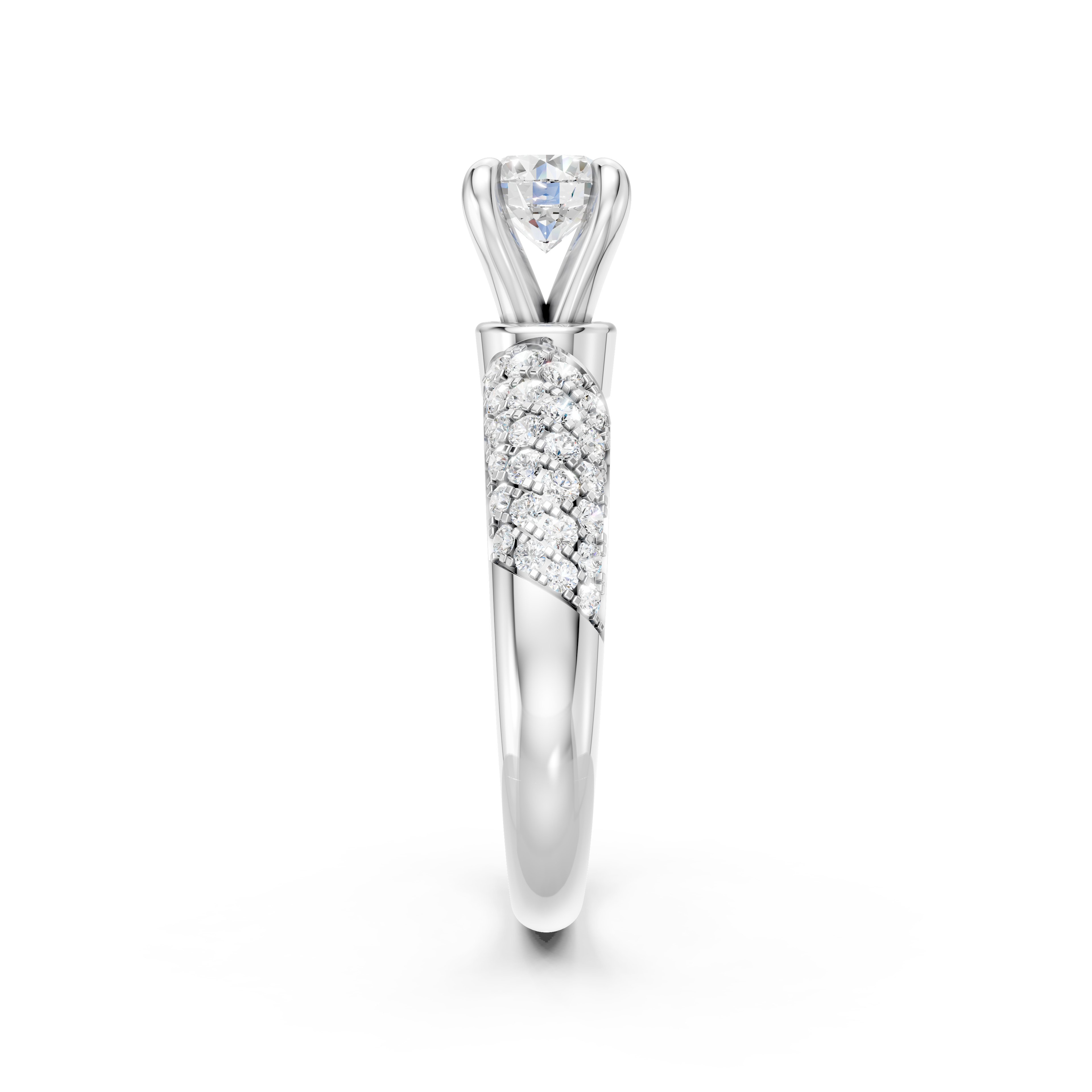 Đai nhẫn được đính kết 48 viên kim cương tấm từ 1.0 đến 1.4 ly, làm nổi bật vẻ đẹp quyến rũ và sang trọng. Mỗi chi tiết đều được thiết kế cẩn thận, không chỉ thể hiện sự quý phái mà còn toát lên vẻ kiên định của phái đẹp.