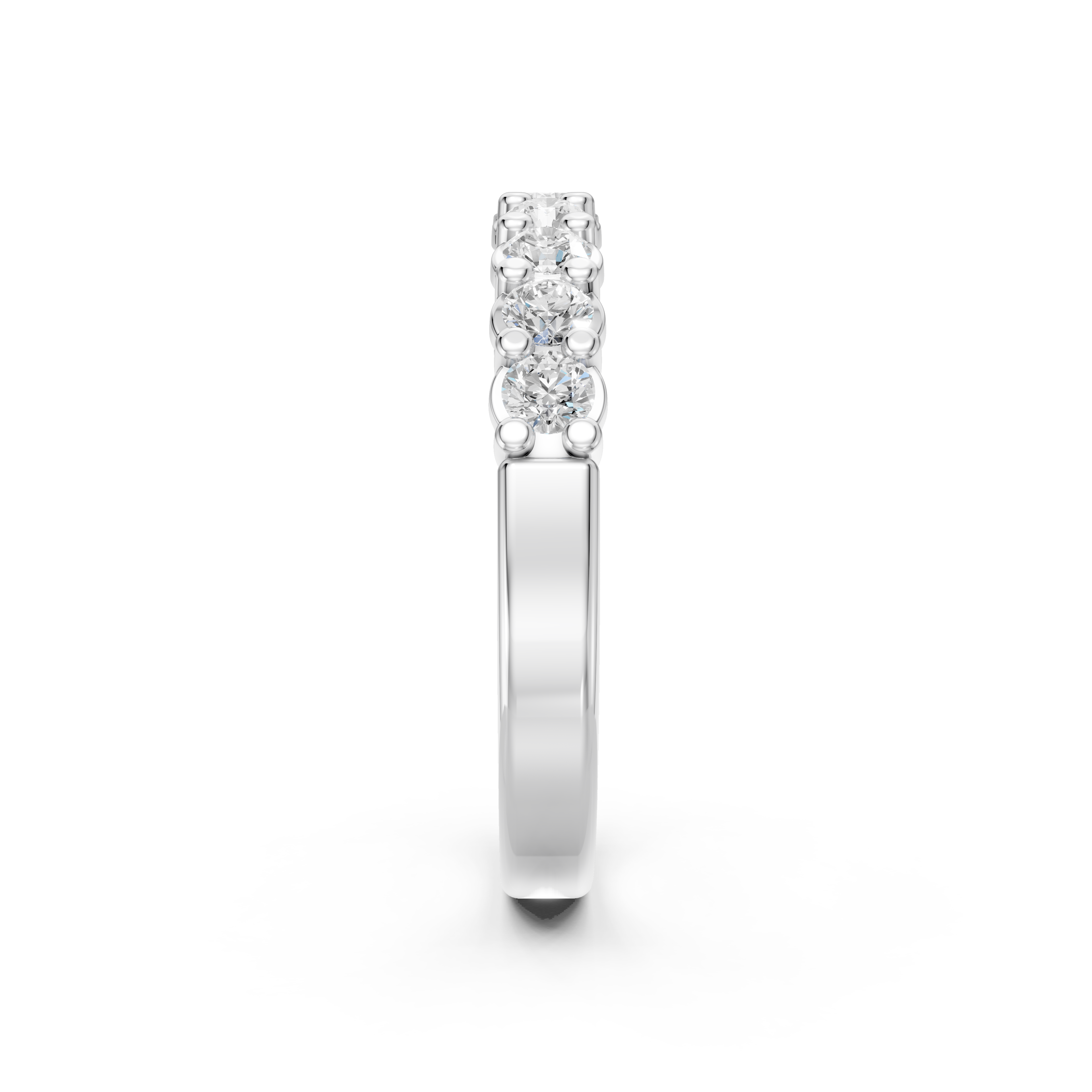 Mặt nhẫn được đính kết khéo léo và tỉ mỉ 9 viên kim cương Round 2.4 ly như những bông hoa nhí xếp liên tiếp, tạo nên một kiểu họa tiết đầy tính nghệ thuật. Những viên kim cương này tỏa sáng rực rỡ, tạo nên một hiệu ứng ánh sáng lấp lánh và làm nổi bật sự thanh thoát của chiếc nhẫn.