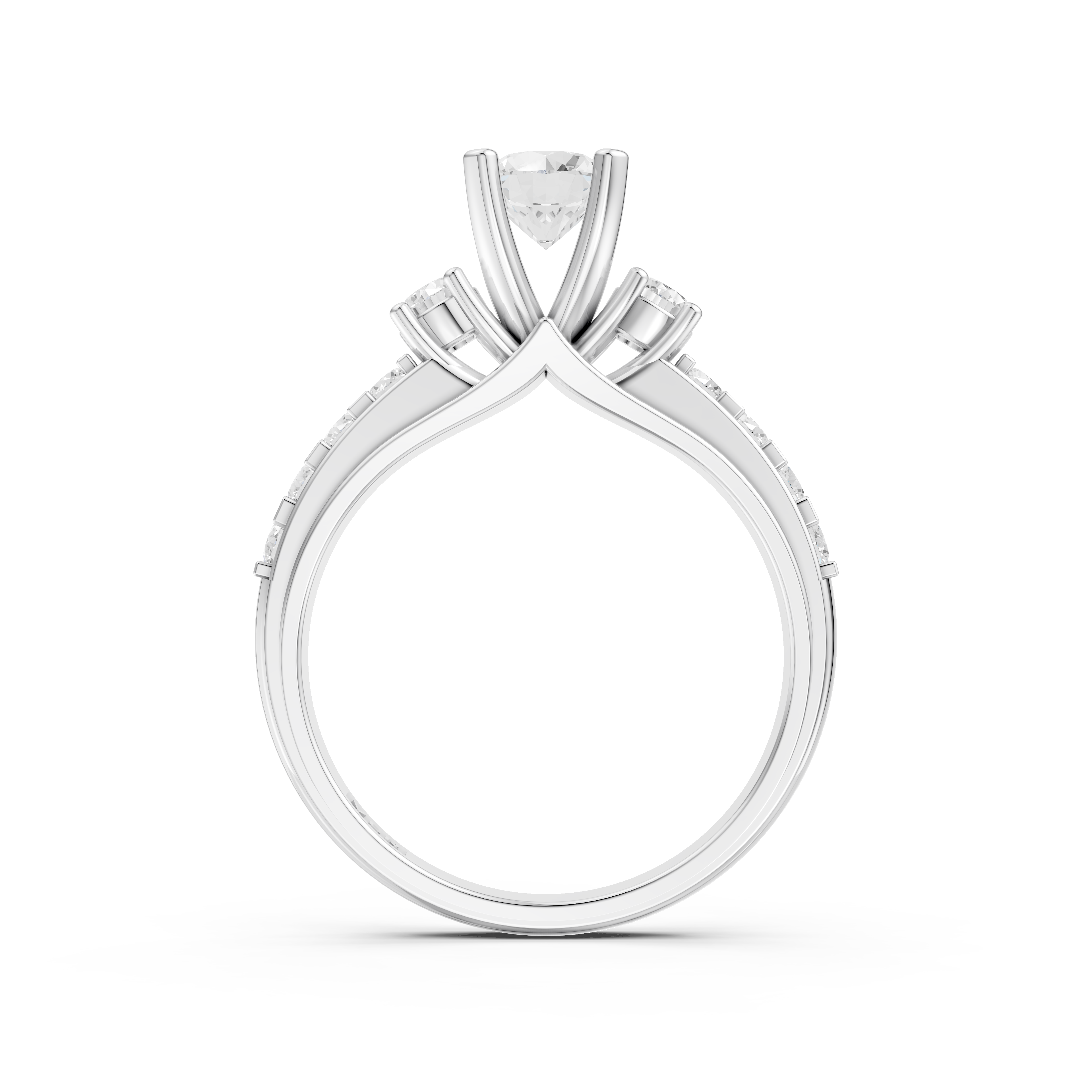 Điểm nhấn đặc biệt và ấn tượng nhất của thiết kế này chính là hai ổ nhẫn nhỏ nằm cạnh viên kim cương chủ, tạo hình như những chồi non đang vươn lên. Đây không chỉ là một chi tiết mang tính thẩm mỹ, mà còn là biểu tượng mạnh mẽ cho sự kiên cường, sự phát triển không ngừng và những bước đi vững chắc về phía trước.