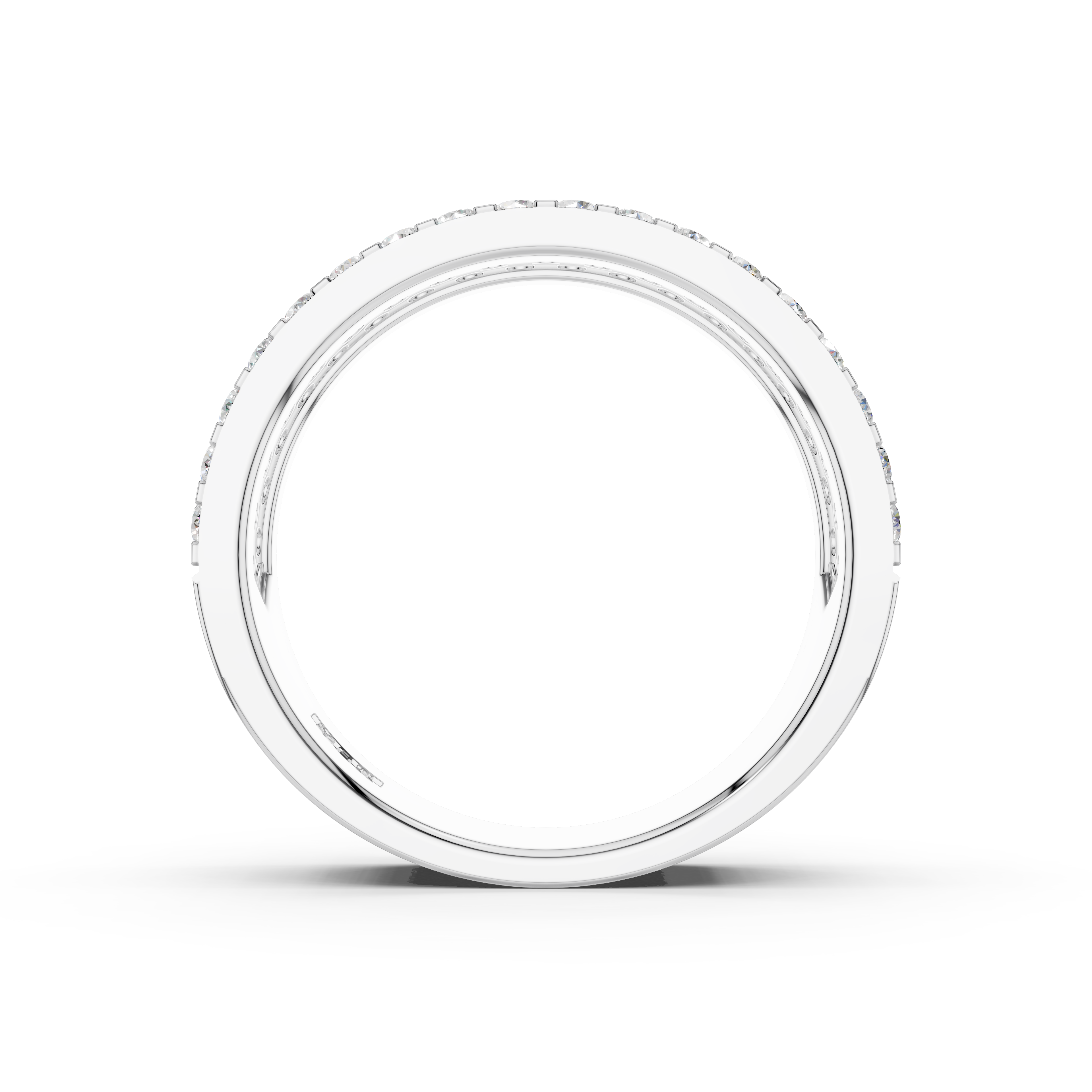 Kiểu dáng thiết kế tinh xảo hơn và đẳng cấp hơn trong mẫu nhẫn NN-0089 của Vĩnh Cara giúp các nàng tỏa sáng ở mọi khoảnh khắc. Chiếc nhẫn kiểu Pave với đai nhẫn to bản, bên trên đính kết 91 viên kim cương Round loại 1.5 ly chia thành 5 hàng xếp sát nhau. Phong cách thiết kế này tạo nên hiệu ứng ánh sáng lấp lánh đầy ấn tượng, đồng thời mang đến cảm giác trẻ trung, hiện đại và năng động hơn cho chiếc nhẫn.
