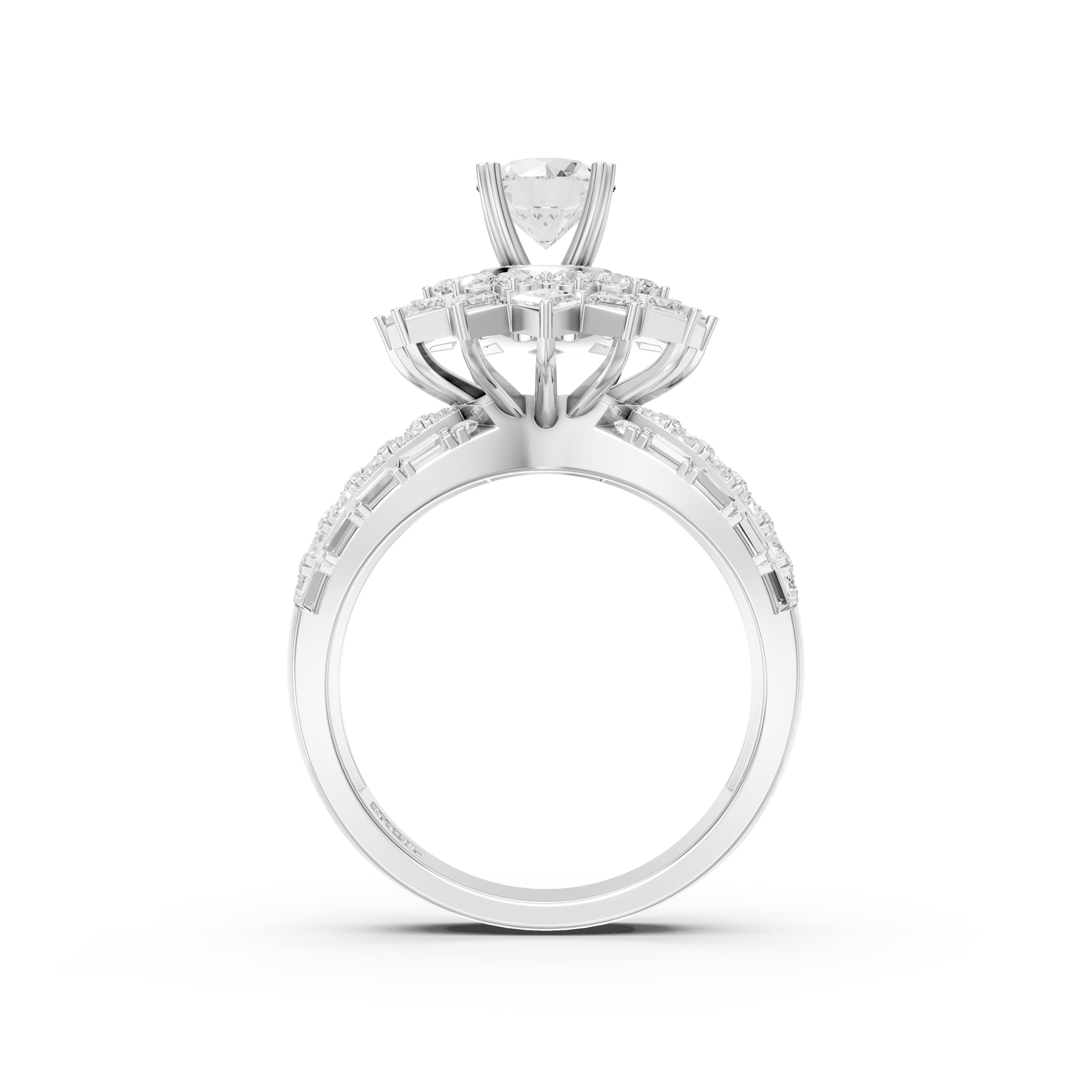 Vỏ nhẫn kim cương NN-0465 được chế tác tinh xảo bằng chất liệu vàng trắng 18K cao cấp kết hợp cùng kim cương lấp lánh, là món trang sức mang lại vẻ đẳng cấp và sang trọng cho quý cô. Chiếc vỏ nhẫn với chấu cao ôm trọn viên kim cương Round 5ly4, đặt nổi bật trên “đài hoa kim cương” tinh xảo, Xung quanh là vô vàn viên kim cương Round, Princess và Baguette được đính kết đầy tinh xảo tạo hiệu ứng ánh sáng ấn tượng, mang lại sự phá cách đầy quyến rũ cho nữ chủ nhẫn.