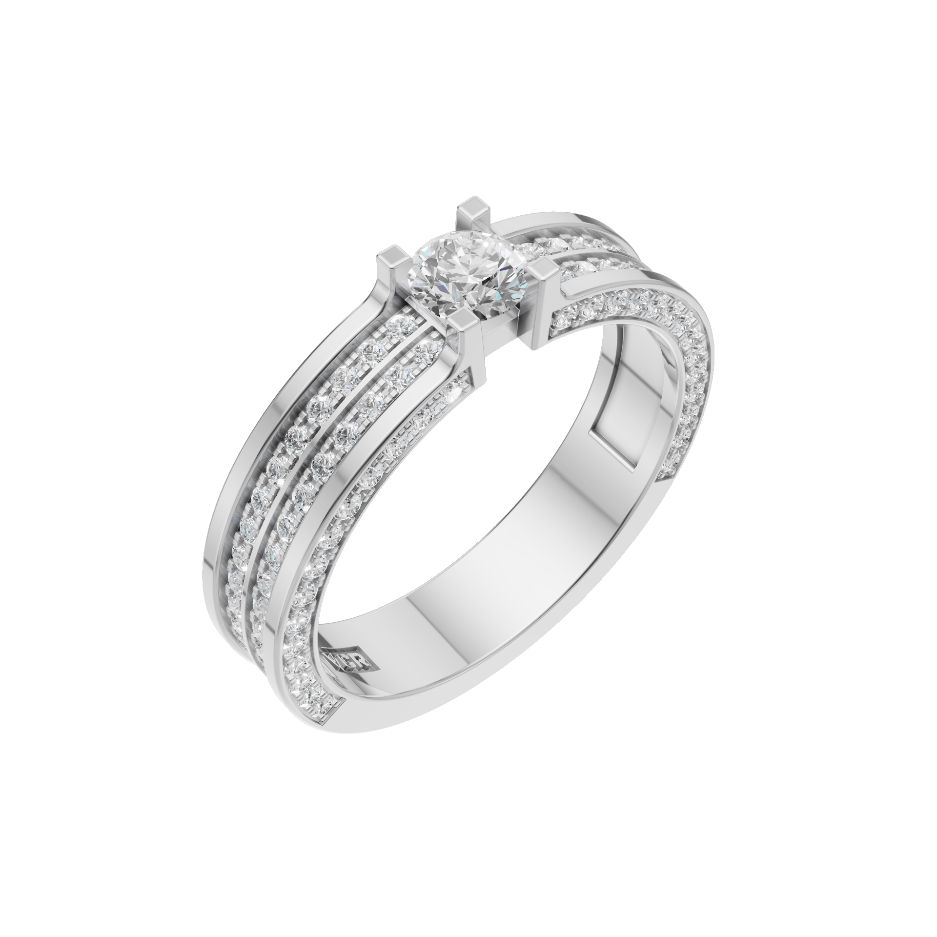 Đai nhẫn cùng hai cạnh bên được tinh tế đính kết 4 dải kim cương tấm lấp lánh, tạo ra hiệu ứng ánh sáng tuyệt vời, làm tăng thêm vẻ sang trọng và tinh tế. Sự kết hợp hoàn hảo giữa kim cương và vàng trắng 18K mang đến vẻ đẹp vượt thời gian, đồng thời thể hiện cam kết bền lâu, là biểu tượng của tình yêu vĩnh cửu.