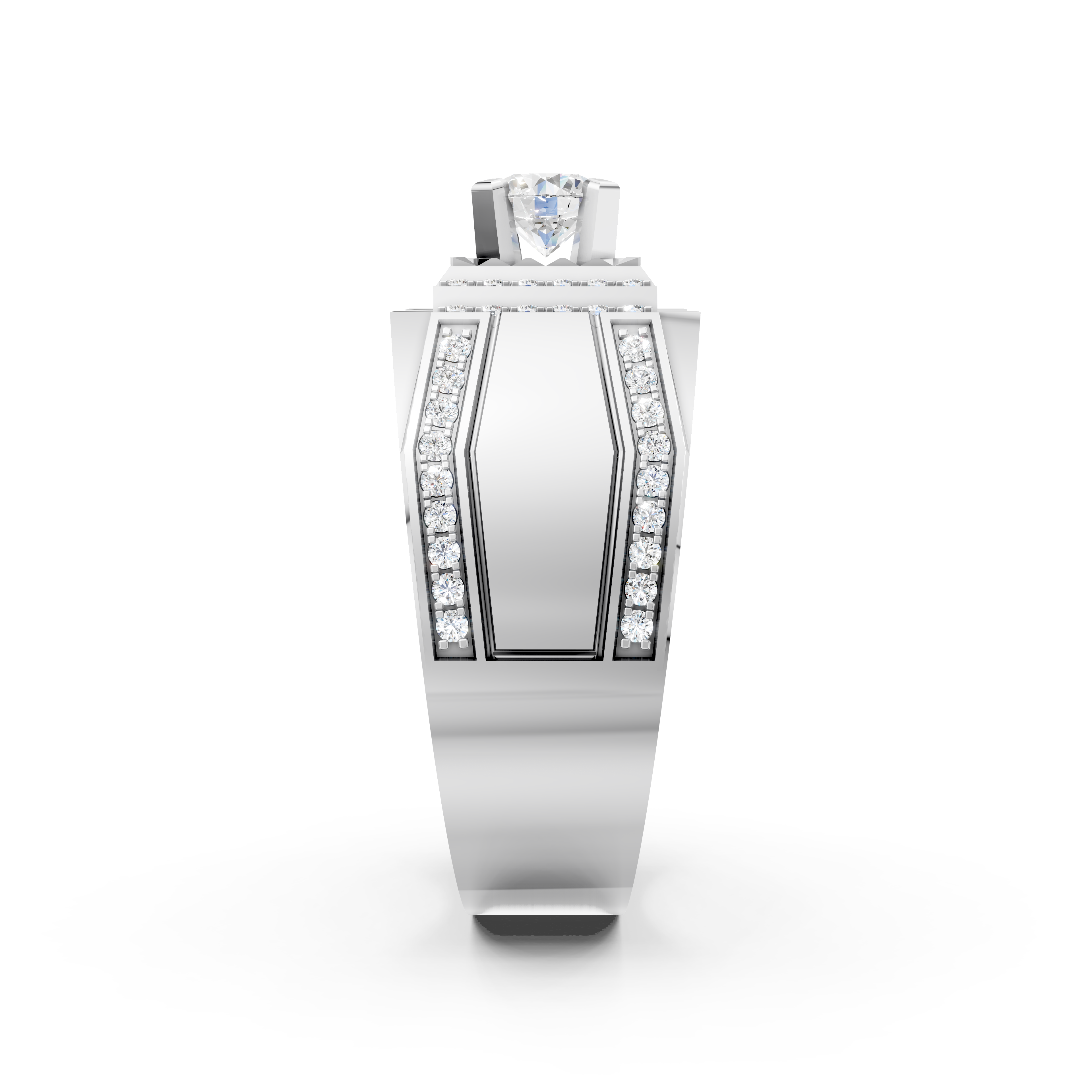 Thiết kế tinh tế: Mặt nhẫn hình chữ nhật theo đúng kiểu Rectangle, phía trên là ổ chủ 4,5 ly tôn vinh viên kim cương chủ cao cấp. Đai nhẫn tinh tế với sự sắp xếp có chủ ý của 60 viên kim cương Round 1.28-1.29 ly lấp lánh.