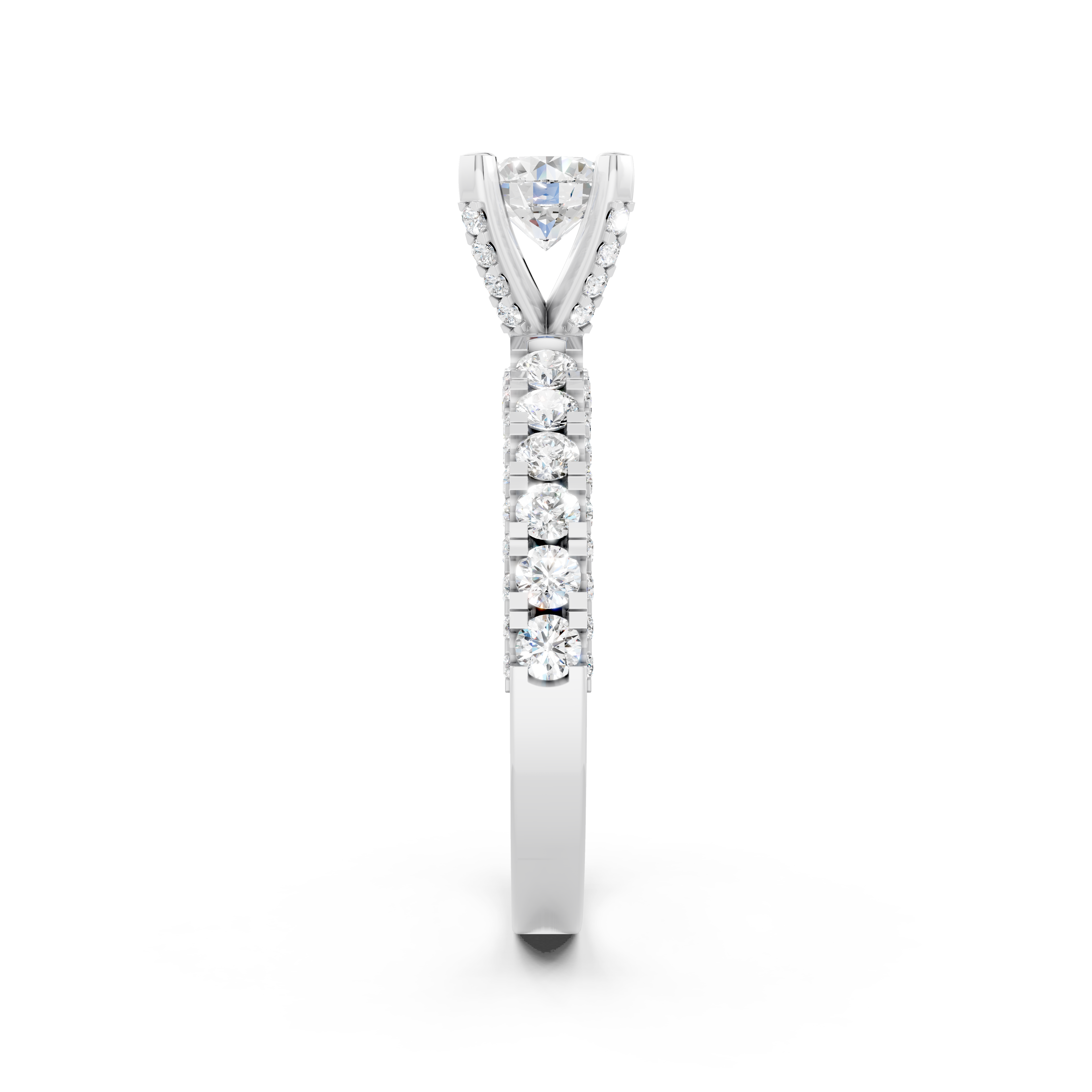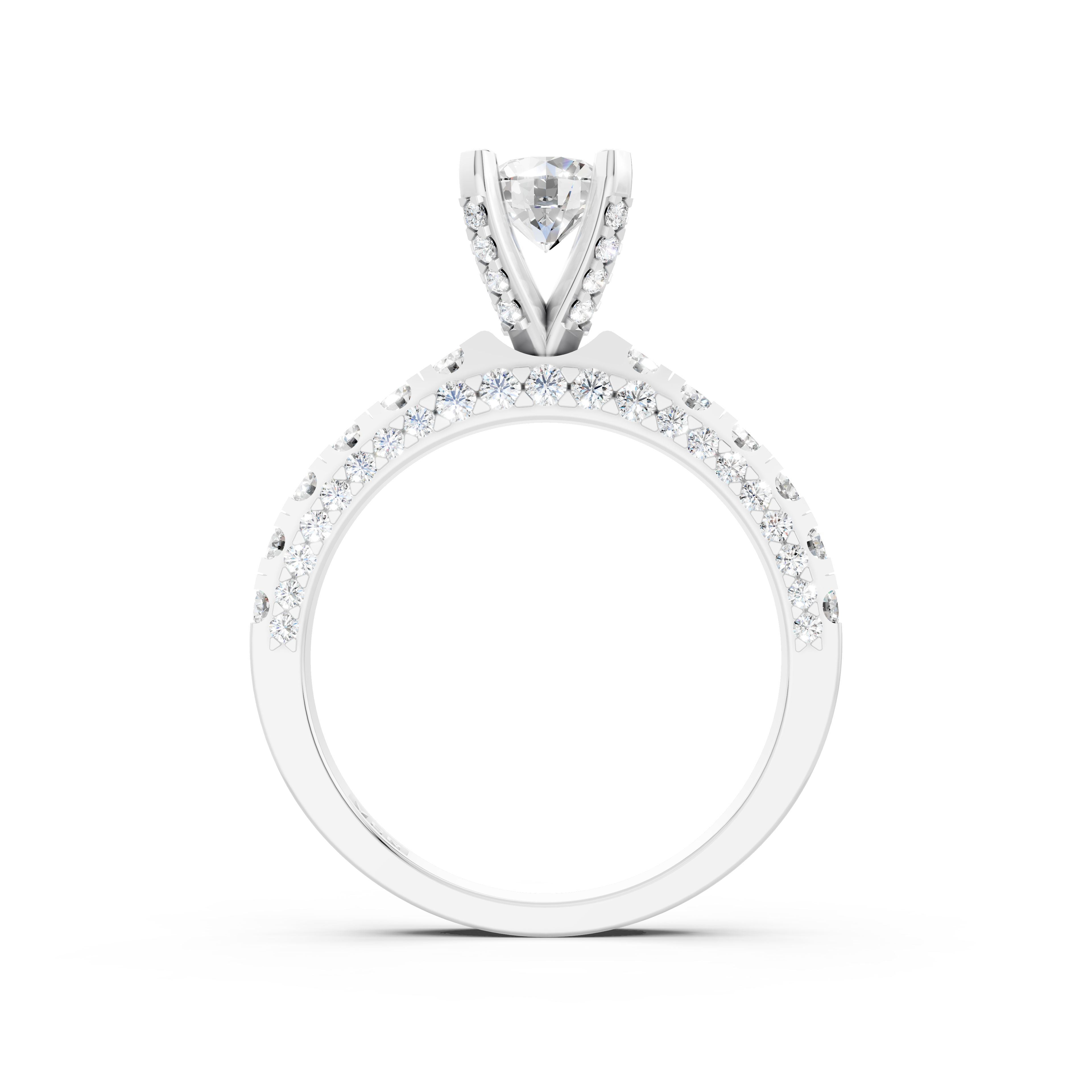 Vẻ đẹp ấn tượng: Đai nhẫn thanh mảnh được nạm một đường kim cương tấm lấp lánh. Thêm vào đó, 4 chấu đỡ viên chủ cũng được nạm kim cương li ti giúp cho chiếc nhẫn trở nên mềm mại, nổi bật hơn.