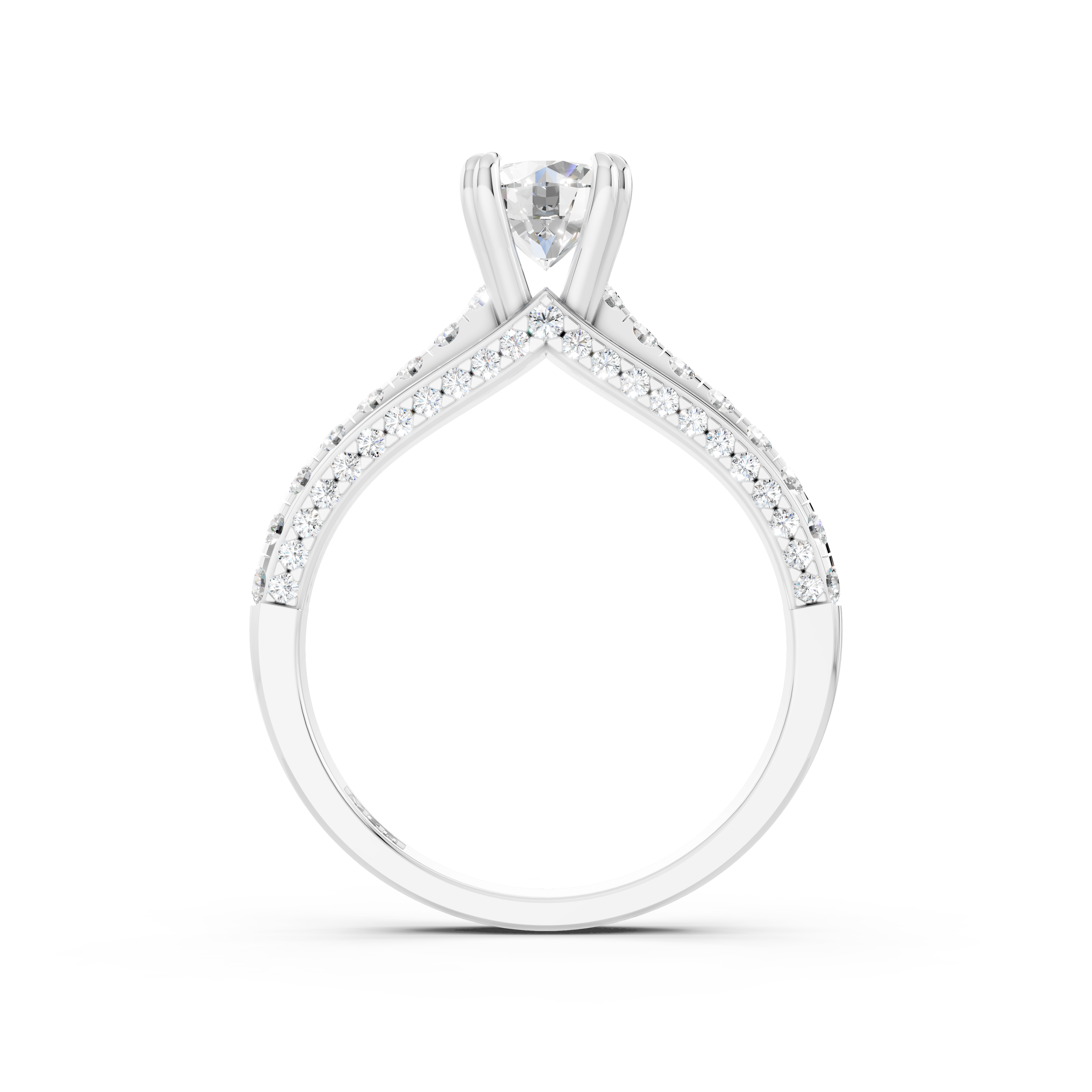 Thiết kế với 4 chấu ôm trọn viên kim cương chủ, vừa bảo vệ viên đá quý, vừa tôn lên vẻ đẹp lấp lánh, rực rỡ, giúp viên kim cương chủ tỏa sáng rực rỡ như ánh sao trời. Dải kim cương tấm được đính tỉ mỉ vòng quanh đai nhẫn, tạo nên hiệu ứng ánh sáng lộng lẫy, thu hút mọi ánh nhìn, khiến cho chiếc nhẫn càng thêm phần lấp lánh và cuốn hút. Sự kết hợp hài hòa giữa vàng trắng và kim cương tạo nên một tổng thể hoàn mỹ, tôn vinh vẻ đẹp sang trọng và quý phái của người phụ nữ.