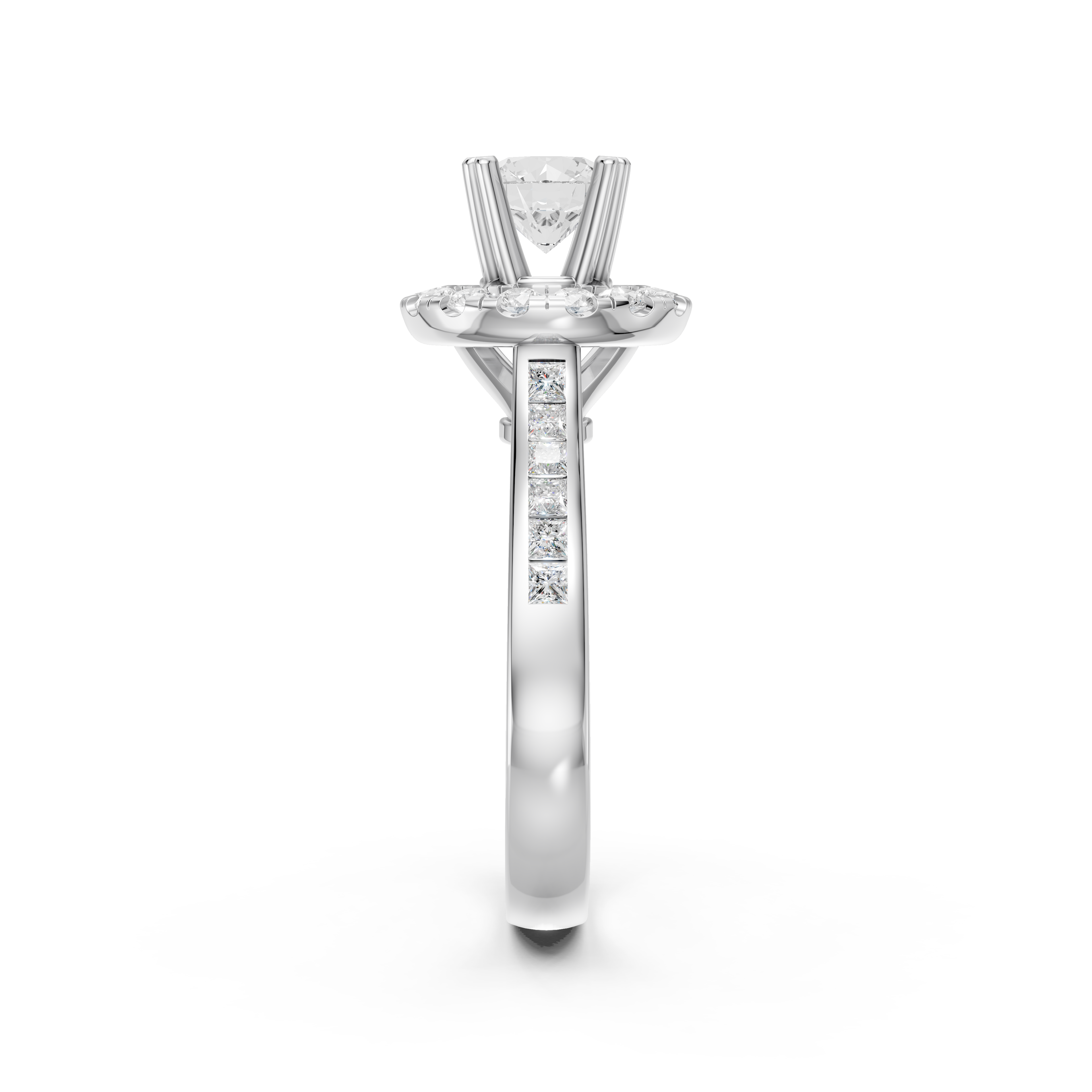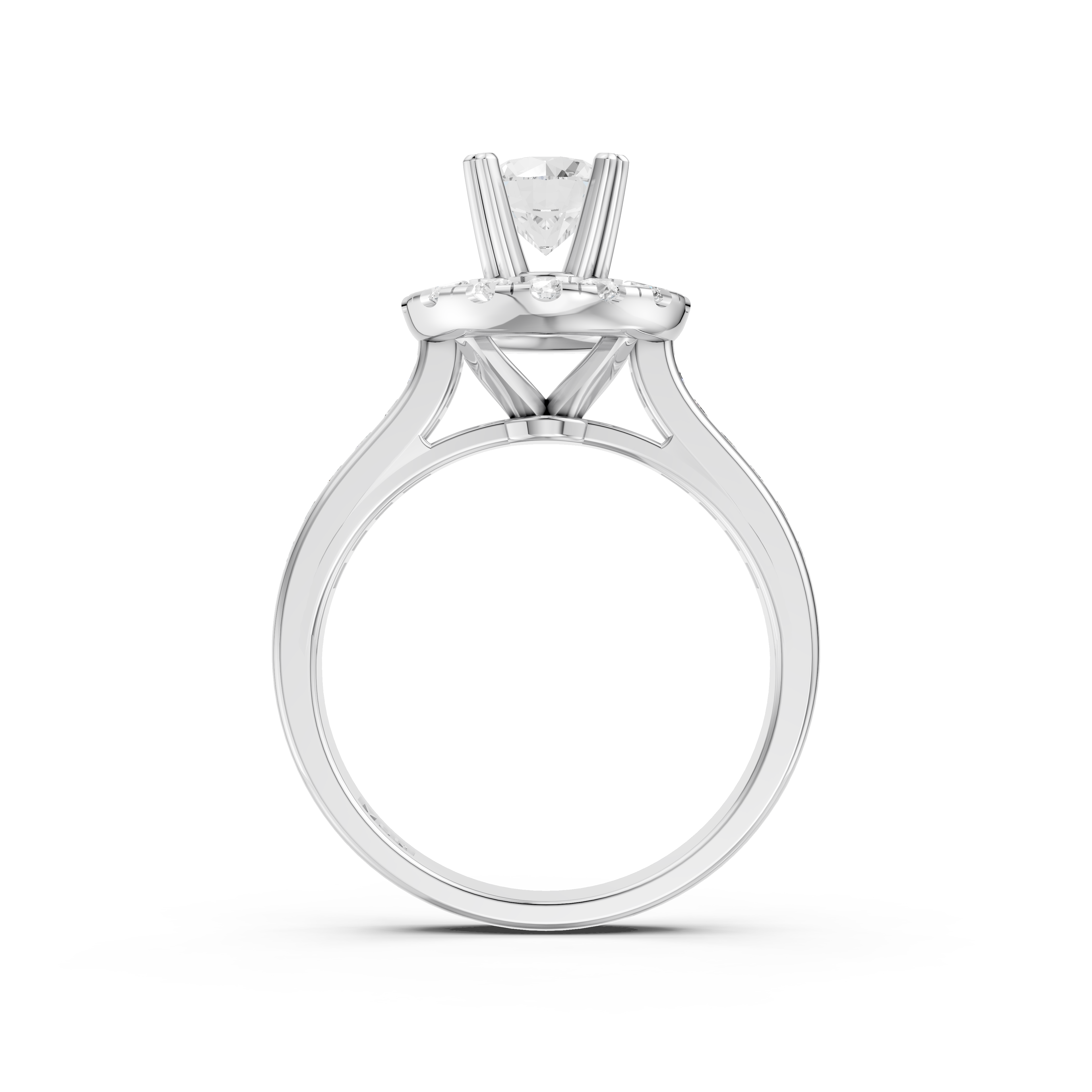 Mẫu vỏ nhẫn này sở hữu thiết kế kiểu Halo đặc trưng với 26 viên kim cương cao cấp đính kết tỉ mỉ tạo thành vòng hào quang lấp lánh bao quanh viên chủ. Những viên đá được sắp xếp đầy tinh tế, giúp tăng độ rực rỡ cho tổng thể chiếc nhẫn và tạo hiệu ứng thị giác khiến viên đá chủ trông lớn hơn.