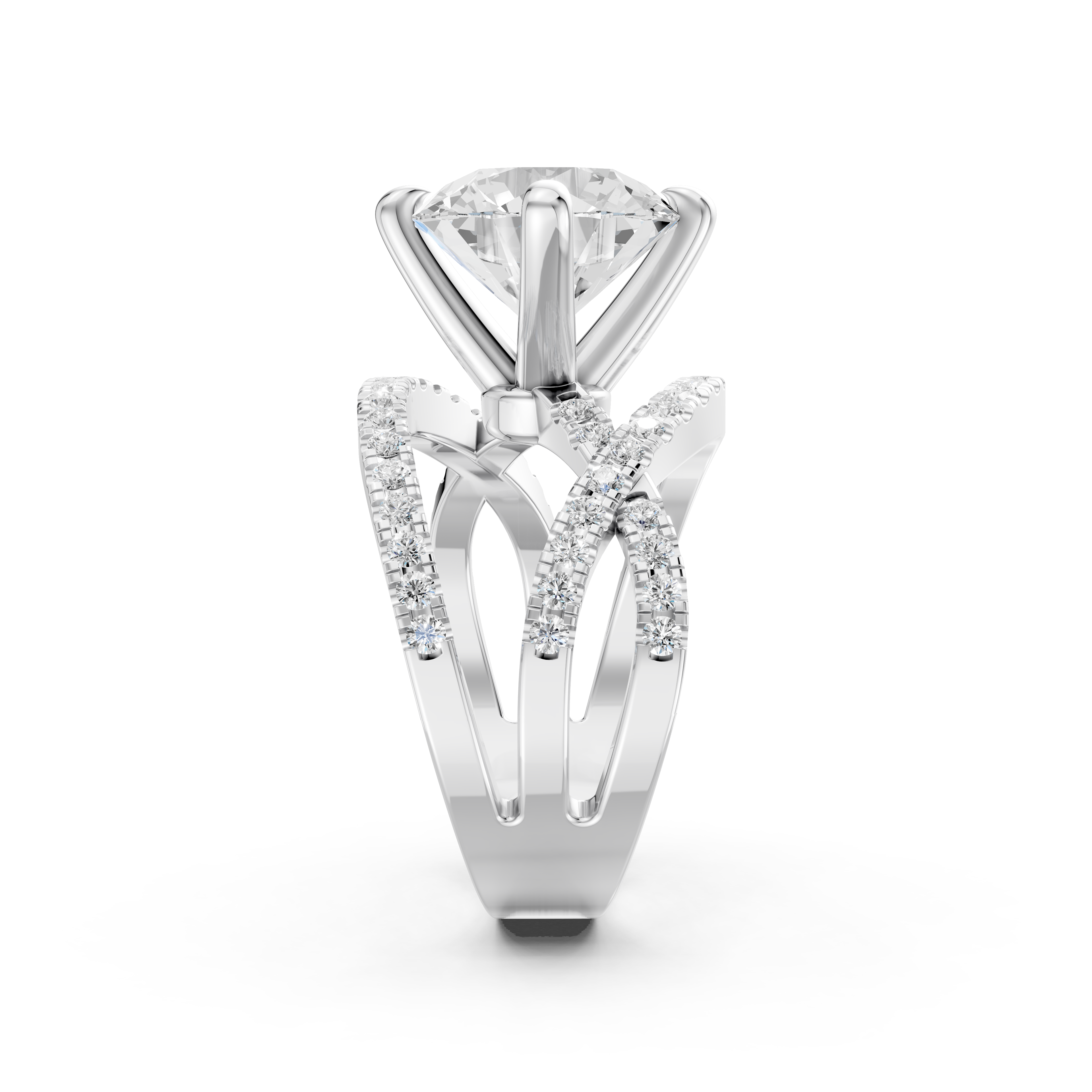 Vỏ nhẫn VCR NN-0874 sở hữu kiểu dáng Solitaire kinh điển, đính 1 viên đá chủ tại vị trí trung tâm với ngụ ý “Mỗi người phụ nữ đều sở hữu vẻ đẹp riêng, không trùng lặp”. Thay vì một vòng tròn trơn như truyền thống, phần đai nhẫn đã được cách điệu độc đáo với cấu trúc xoắn ốc. 52 viên kim cương cao cấp tạo ra 3 dải ánh sáng lấp lánh, đan xen thành những đường cong uốn lượn ôm trọn lấy ngón tay của quý cô.