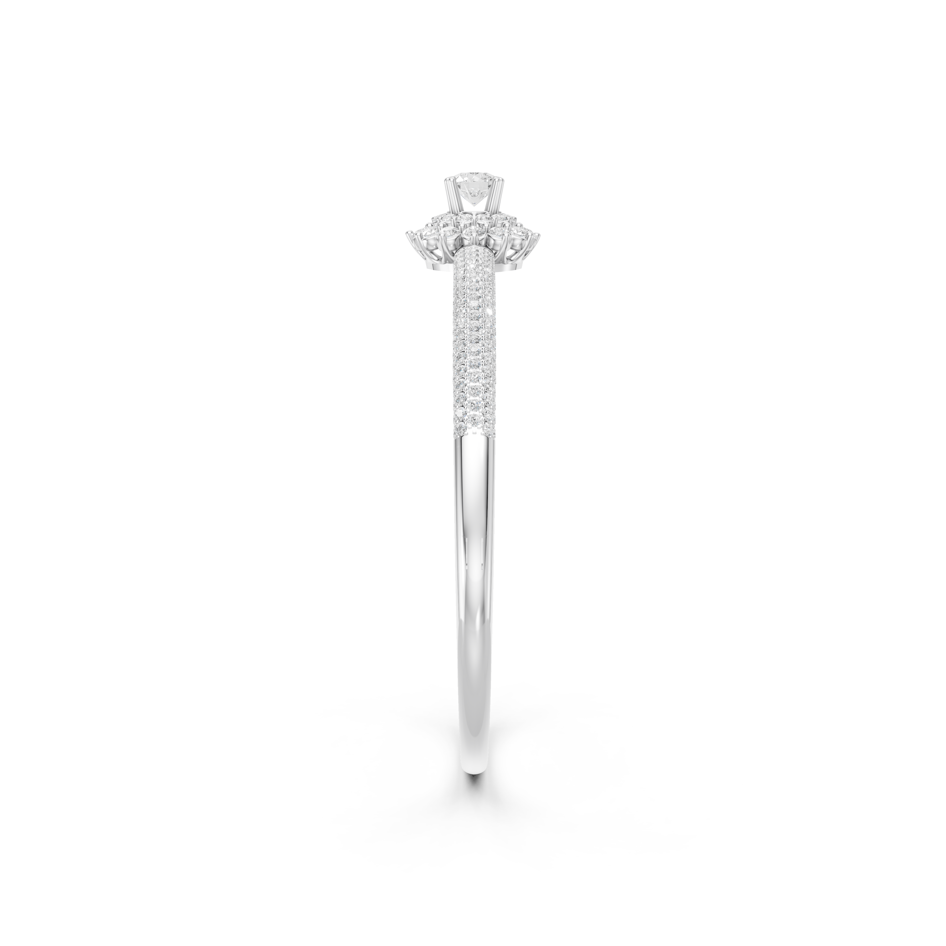 Thiết kế kiểu dáng Cluster điệu đà và lộng lẫy, chiếc vòng tỏa sáng rực rỡ với vẻ đẹp vượt trội trong từng chi tiết. Phần trung tâm của vòng là viên kim cương chủ lấp lánh, được đặt trên 4 chấu cao, tạo nên sự nổi bật cho toàn bộ thiết kế.