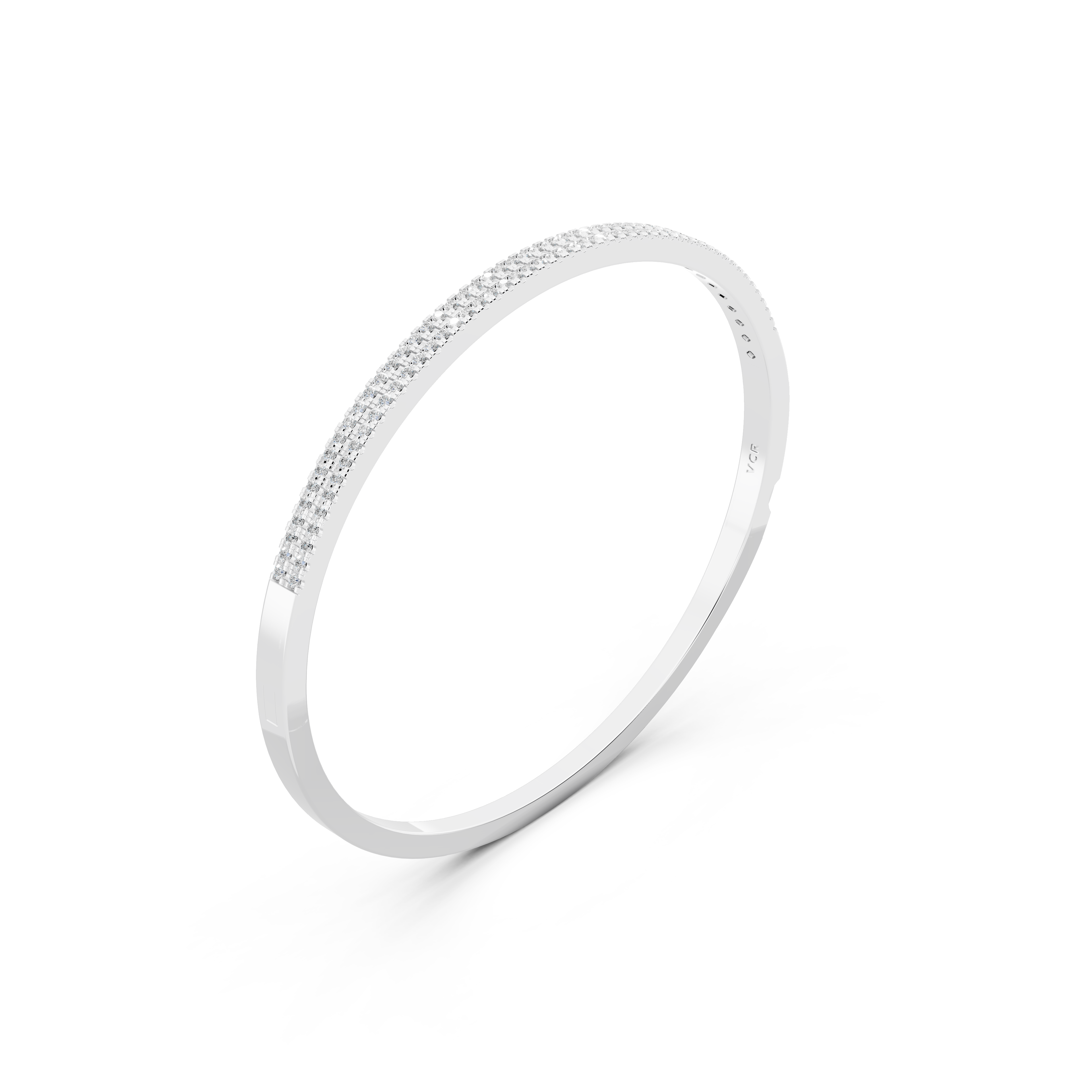 Vòng tay VN-0096 có thiết kế dạng Band, với phần thân vòng tròn cứng, tỉ mỉ và chắc chắn. Điểm nhấn chính là lớp kim cương nhỏ li ti được đính đều xung quanh, tạo nên bề mặt lấp lánh, thu hút ánh nhìn từ mọi góc độ. Thiết kế khóa tiện lợi giúp việc đeo và tháo vòng trở nên dễ dàng, nhưng cũng không làm mất đi sự chắc chắn và độ bền cao của sản phẩm. Chính sự đơn giản trong thiết kế càng làm nổi bật sự tinh xảo và sang trọng của từng viên kim cương, tôn vinh phong cách nhẹ nhàng nhưng đầy sức mạnh của người đeo.