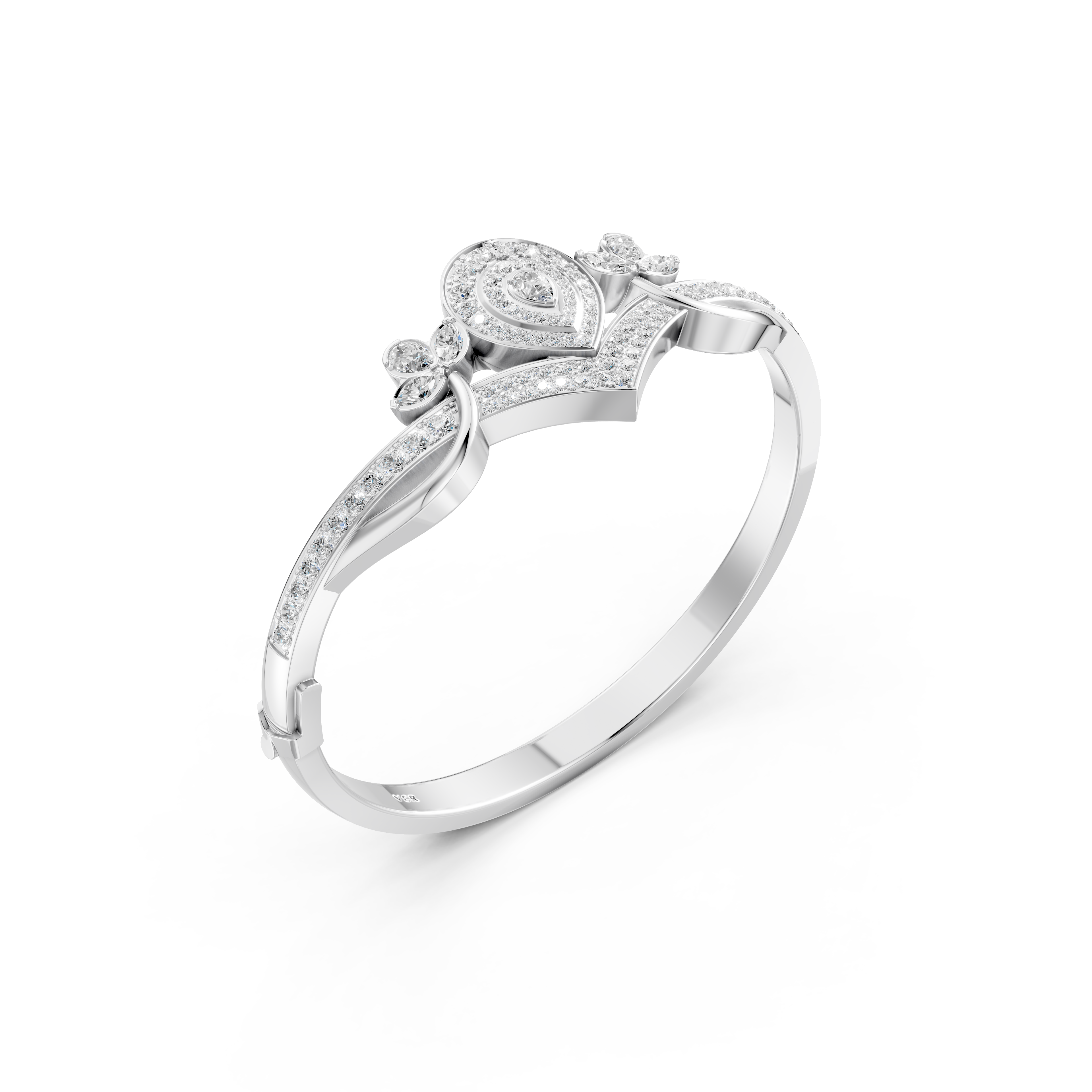 Thiết kế của VN-0064 là sự kết hợp hoàn hảo giữa vẻ đẹp hiện đại và tay nghề thủ công đỉnh cao. Chất liệu vàng trắng 18K được tuyển chọn khắt khe, làm nổi bật ánh sáng rực rỡ từ các viên kim cương. 90 viên kim cương Round, Pears và Maquise với kích thước và kiểu cắt khác nhau được bố trí tinh tế, tạo nên hiệu ứng ánh sáng lấp lánh, như những giọt sương đang nhảy múa dưới ánh nắng. Sự hài hòa giữa các chi tiết không chỉ làm tăng thêm vẻ kiêu sa mà còn khẳng định giá trị bền vững của một món trang sức cao cấp.